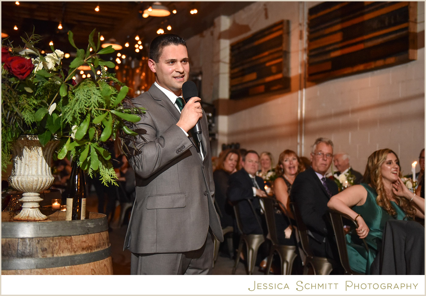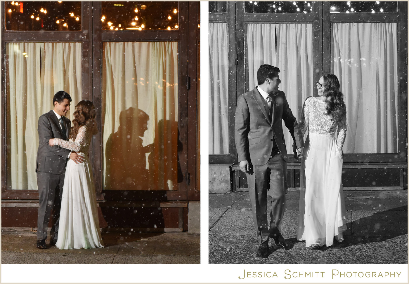 Although it generated some stress given the possibility that snow could cause problems for traveling guests, we could not have been happier with how our winter wedding turned out. Not only were there no travel issues, but it began to snow right as our ceremony began and continued throughout the reception. With an atrium room and large windows at the winery, the falling snow was visible all night and added an incredible, magical element to the wedding that was more than we could have asked for.