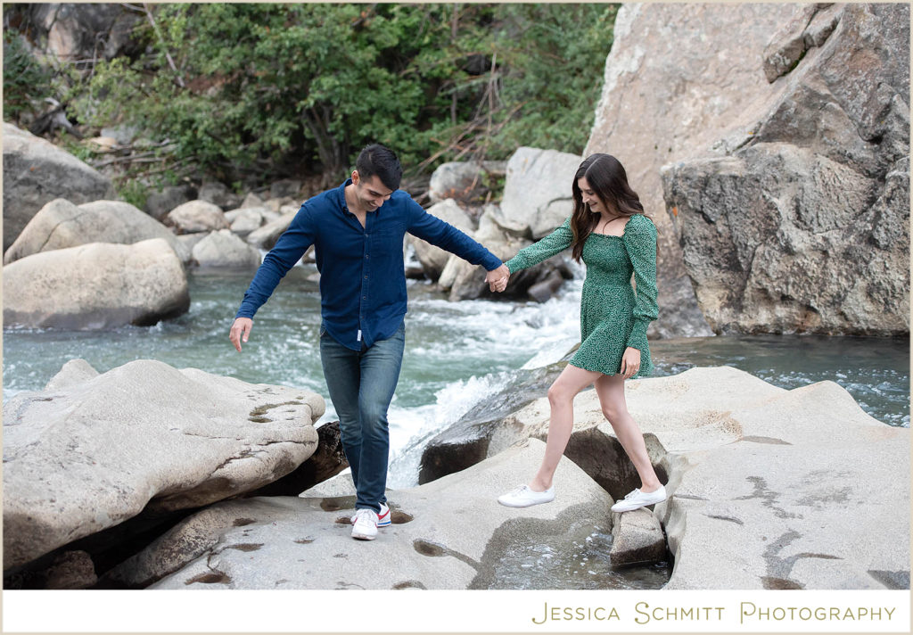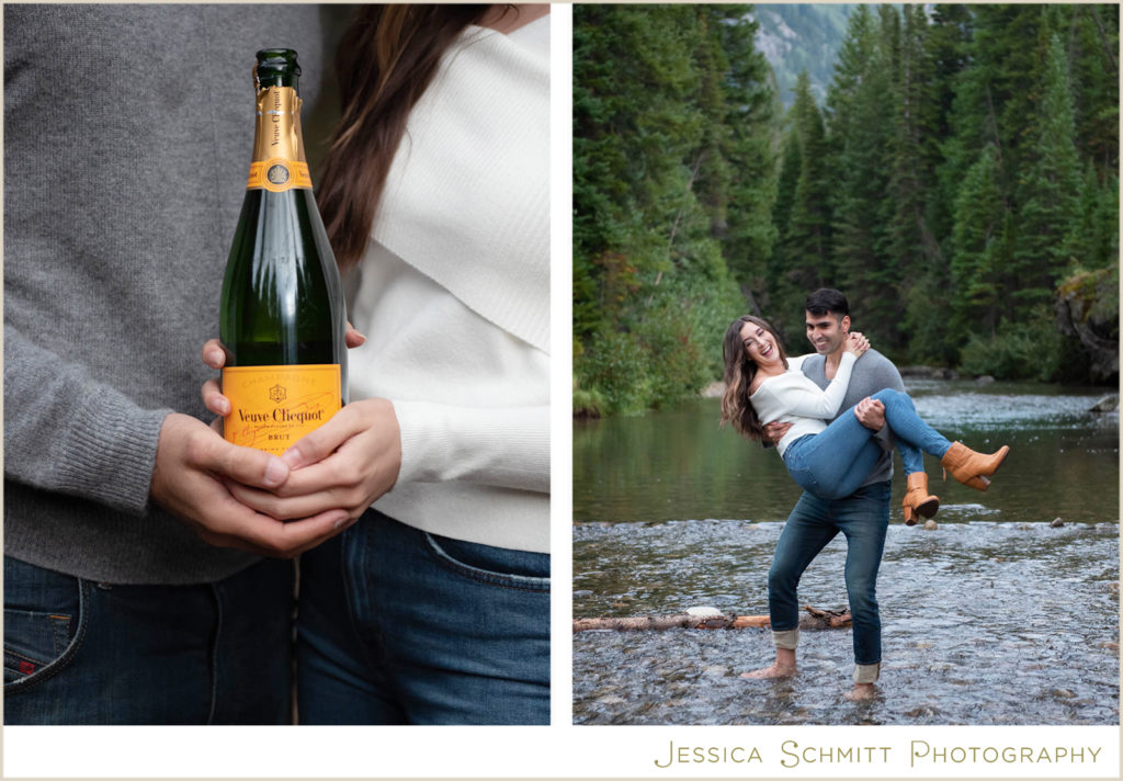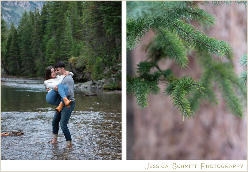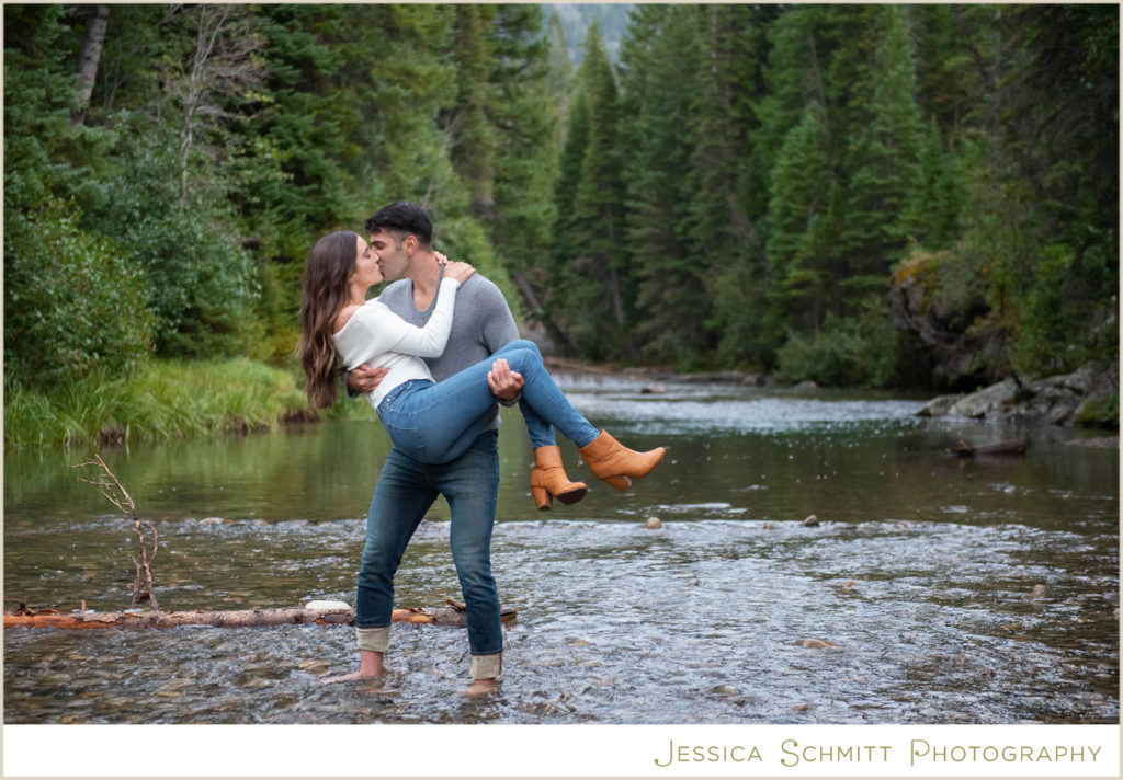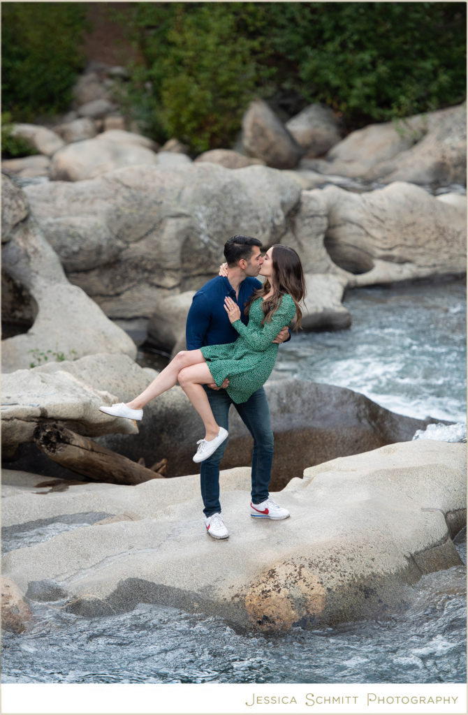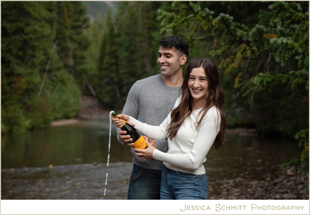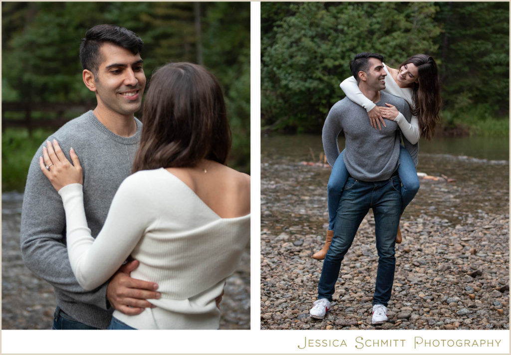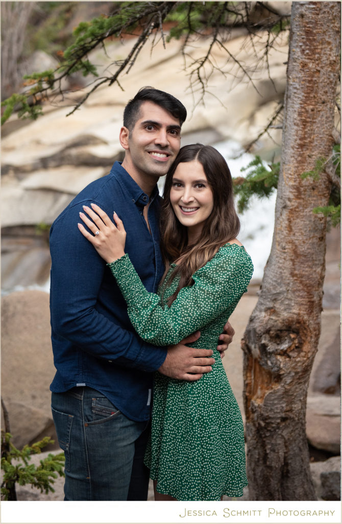 Aspen has quickly become one of our favorite destinations. After our first trip there together, Cyrus thought “this is the spot” to propose. One morning in September we both hopped in the car to drive to hike our favorite spot, the Grottos Trail. We packed up a little bag and headed up to the Grottos. As soon as we arrived, we set up our spot with a blanket to enjoy the sunny summer day. Cyrus quickly told me that he needed to show me something… We both walked over to a tree-filled area where he then handed me his iPad, making me thoroughly confused. Then, he proceeded to press play on a video he had put together of pictures throughout our 6-year relationship while reading me commentary alongside of it. At the end, I got to look over and see Cyrus down on one knee saying, “will you marry me?” He got the immediate answer of “yes!!!” We celebrated this special moment by “taking the plunge” into the freezing cold water of the river that runs through the Grottos. Now Aspen is forever special to the two of us!