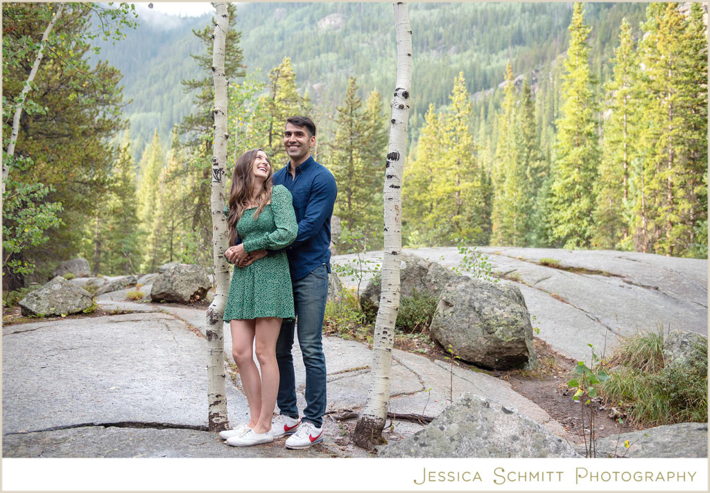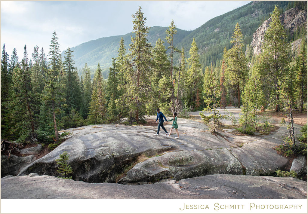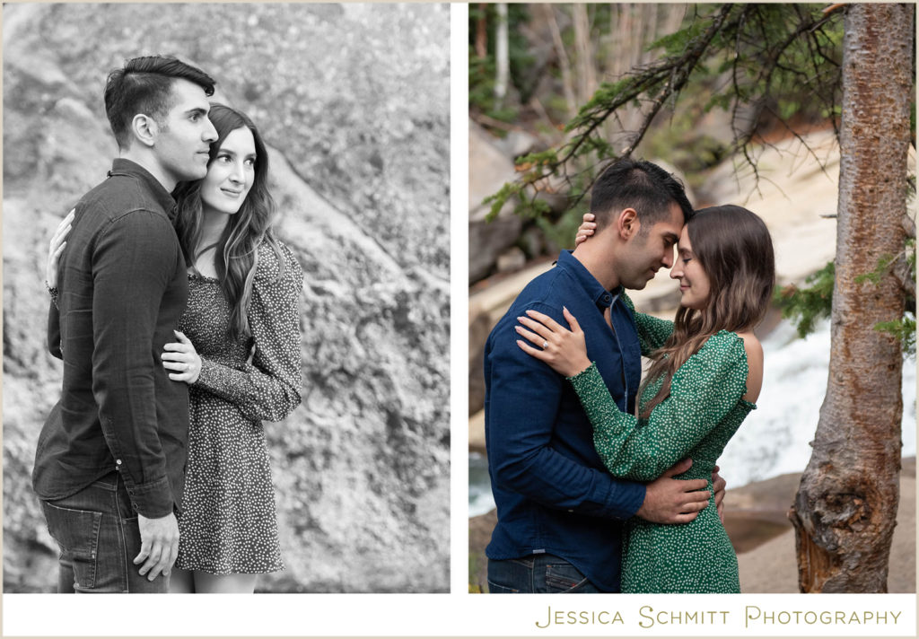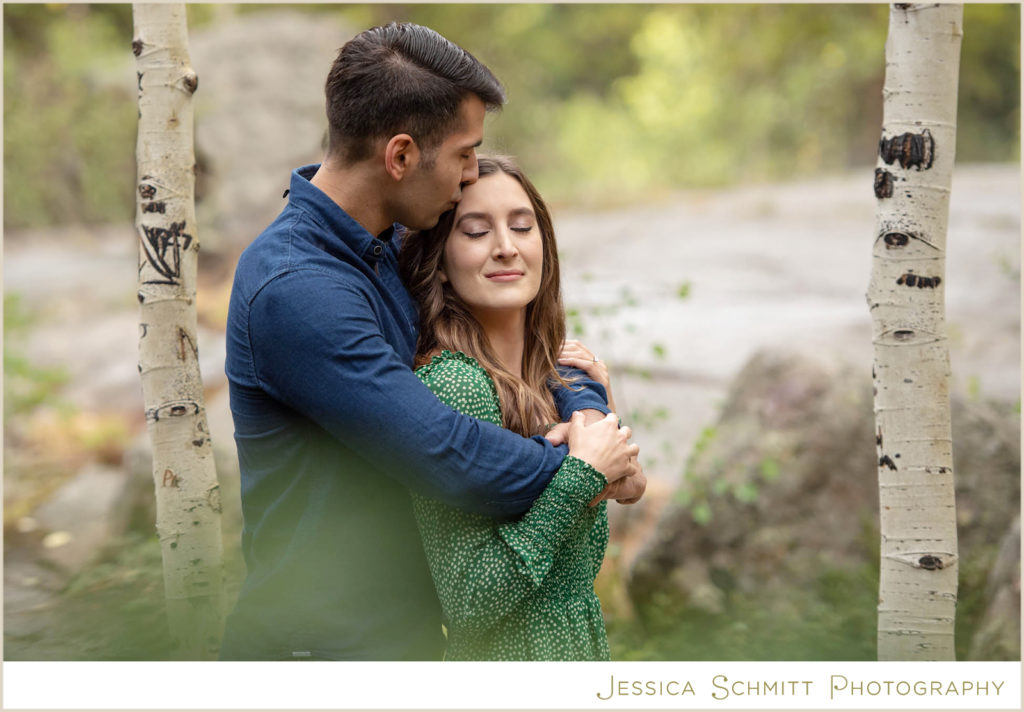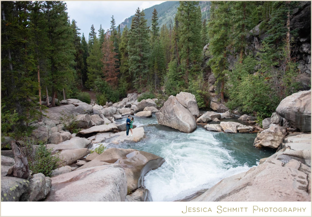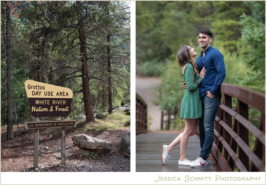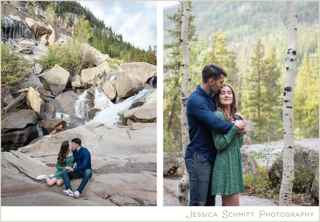 Grottos Trail is in White River National Forest near Independence Pass (one of the craziest roads I’ve ever driven on!). As you drive through the mountains you see forests full of Aspen trees. When my husband and I pulled to the side of the road to take in the view before the photo session, we could hear the rushing river. In the forest, trails take you through the woods, over a bridge and to the large rock formations with cascading waterfalls. It is so beautiful.
