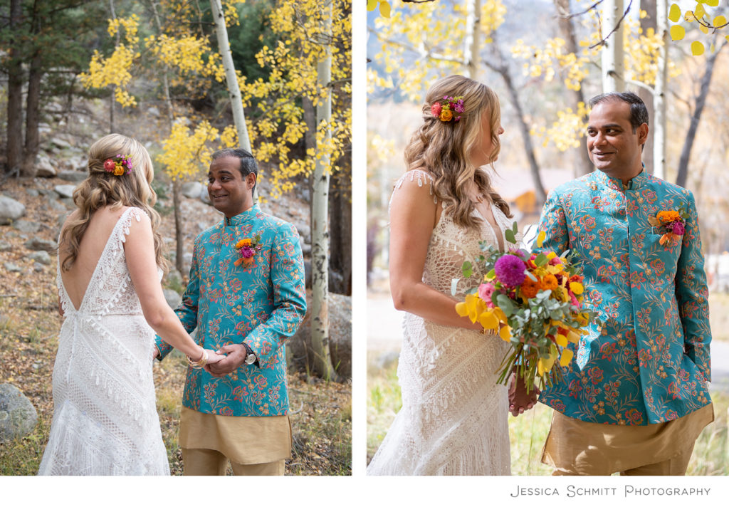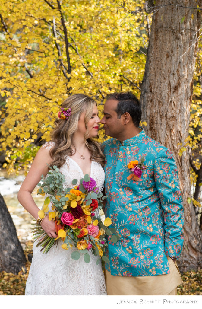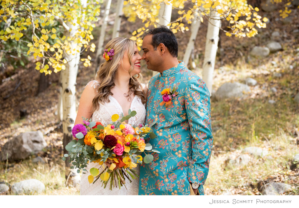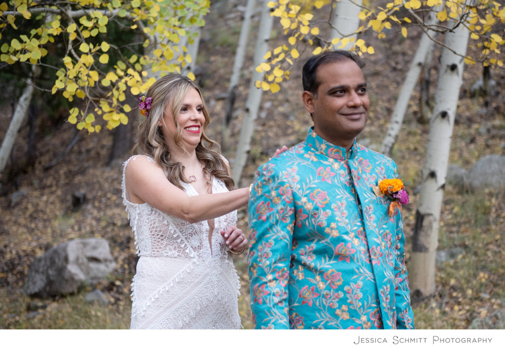 He proposed at home, the day we were leaving for India, just a few hours before our flight. I wouldn’t have wanted it any other way. Just the two of us in our home. We had a relatively short trip but had a great time. His family was so loving and welcoming. The plan was to have our wedding in India in January 2023 and then a stateside wedding in the Spring or Summer of 2023. However, due to my mom’s cancer treatment, we decided to move things up. Memorial Day weekend, I called Mount Princeton Hot Springs Resort and they had an opening for October the 8th and we set the date. Mount Princeton is very special to me and my family. It wasn’t hard to sell Sandeep on it either when we starting visiting the resort a few years ago.”