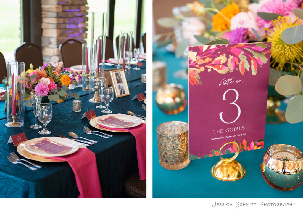Taylor continues with some kind words about the vendor team, “Our day was beautiful! Laura McCasland of McArthur Weddings and Events took my abstract ideas and pulled them together into something amazing. I told our florist, Growing Wild, to run wild with her creativity and Madison and her team knocked it out of the park with the florals. Rachael Hoch did a gorgeous job on our hair and makeup. Jessica and Eric, Photography by Jessica Schmitt, did a fantastic job with photography. They both were warm, down to earth and made us feel at ease and comfortable. We can’t wait to see more photos. Our caricature artist, Jake, and magician, Shawn, delighted our guests and they raved about both. We are so thankful for the team of people that helped make our day special and beyond our wildest dreams.”