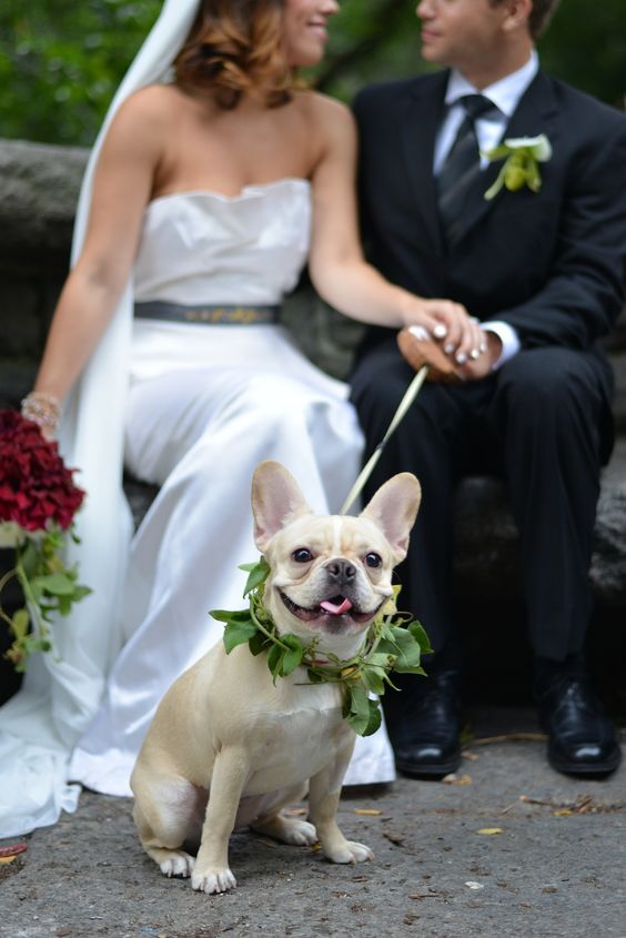 Another important factor is your dog’s personality. Does your dog have a lot of energy? Can they sometimes be aggressive? Or get anxious around a new place or around lots of people? If so, your wedding day might not be the best place for them. If they are stressed out it could stress you out too–and neither of you deserve that! But, you can include them in the decor as a cake topper, in printed photos along with your family photo display, or you could name your signature cocktail after them.