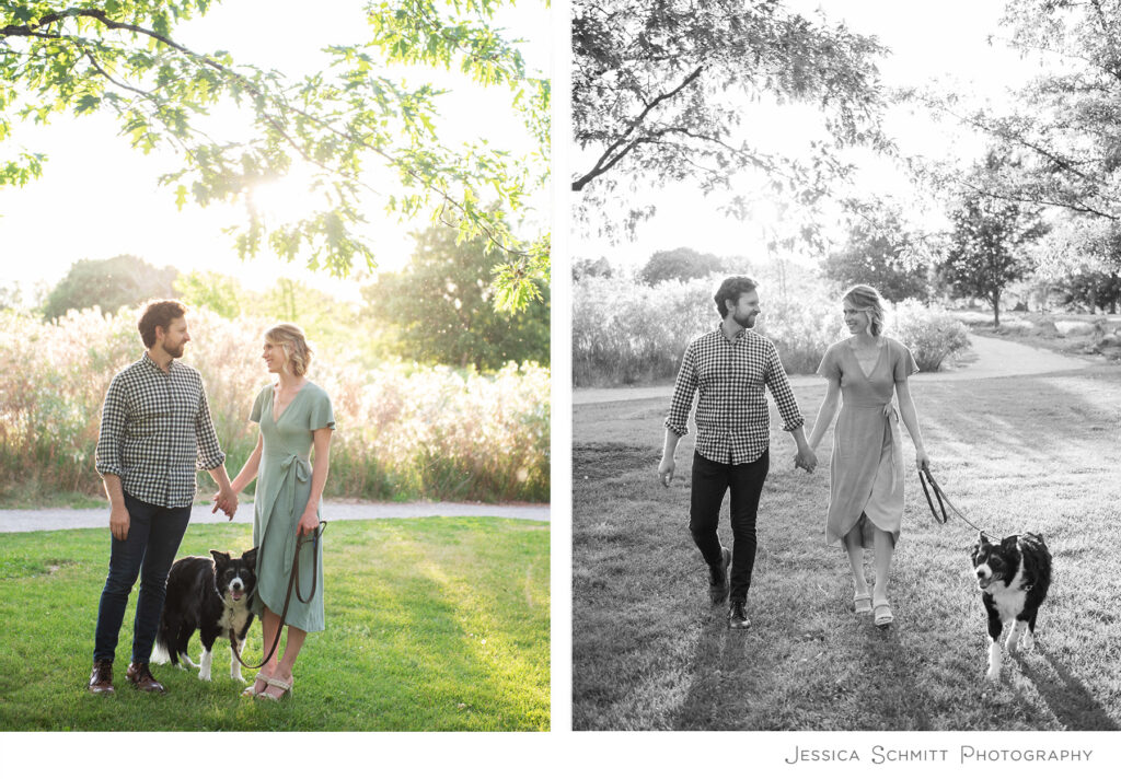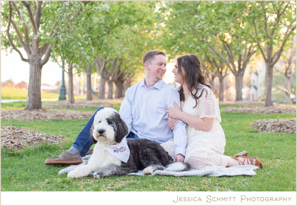 If incorporating your dog into your wedding day is too difficult, you may decide to include your dog in your engagement photos. I still recommend bringing a friend to help with your dog during the shoot. Although we will want to get some great photos with them, we will also want to get some photos of just you and your fiancĂ©. During this time it really helps to have someone taking care of your pet so that you don’t have to worry.