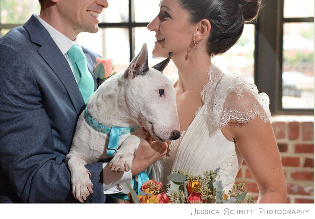 Some couples bring their dogs to the wedding day only for a short time to be included in some photos and other couples plan for their dog to be in their wedding ceremony as the flower girl or ring bearer. It is most common for a couple to plan for their dog to be part of their engagement session or for the couple to plan for their dog to be in about 10 minutes worth of photos and then go home, but it is totally up to you!