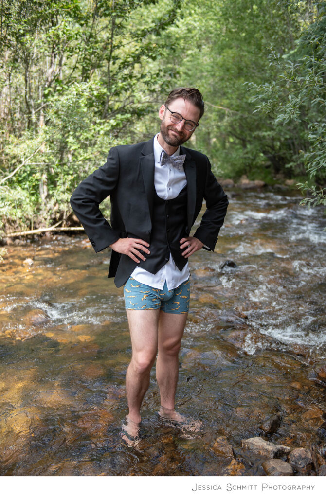 Shira shares, “We were at the venue getting ready when my fabulous wedding planner, Meghan, popped her head in to let me know that my groom was pantsless! He had forgotten his tuxedo pants at home, about an hour away. We were supposed to be doing our first look in 5 minutes. To ease the stress and make it a fun memory, Meghan suggested we make him pose in his boxers! It’s one of my favorite moments from the day. My brother, our officiant, saved the day by lending David his pants for the first look. By the time the ceremony rolled around, David had his pants back and all was well.”
