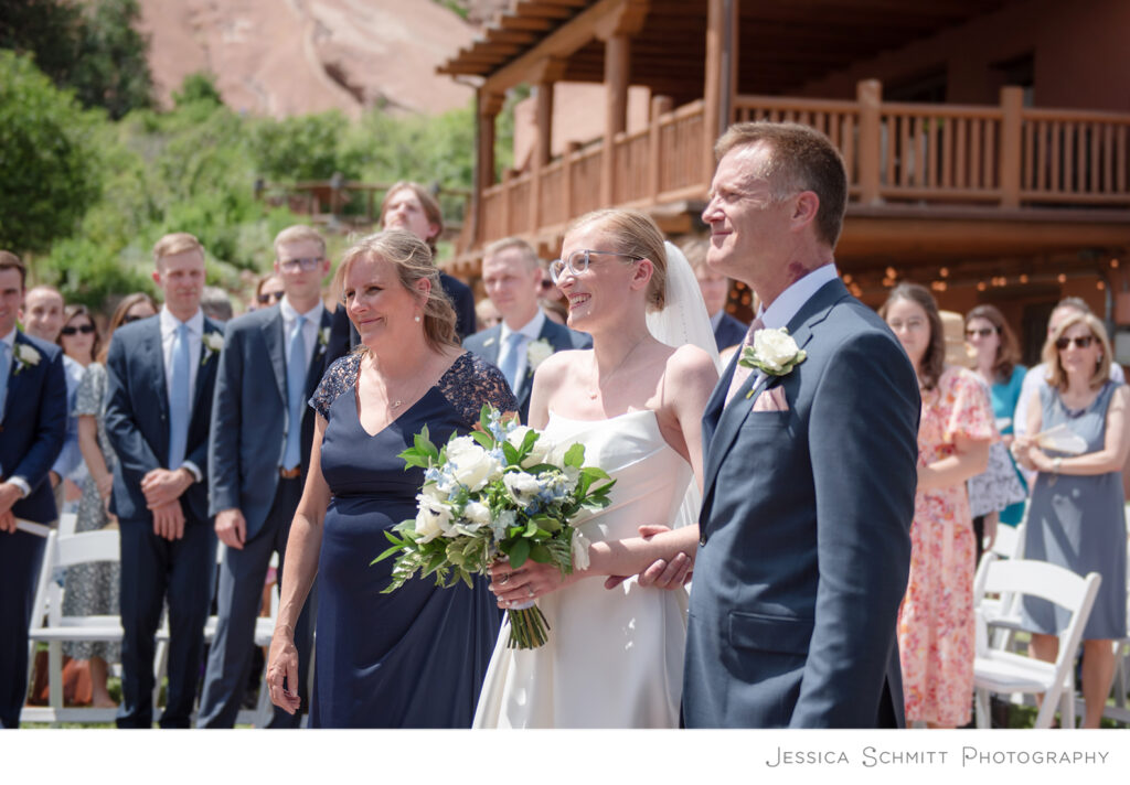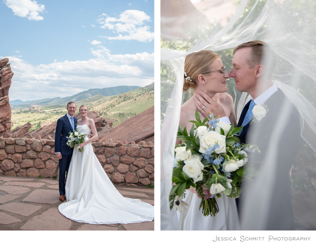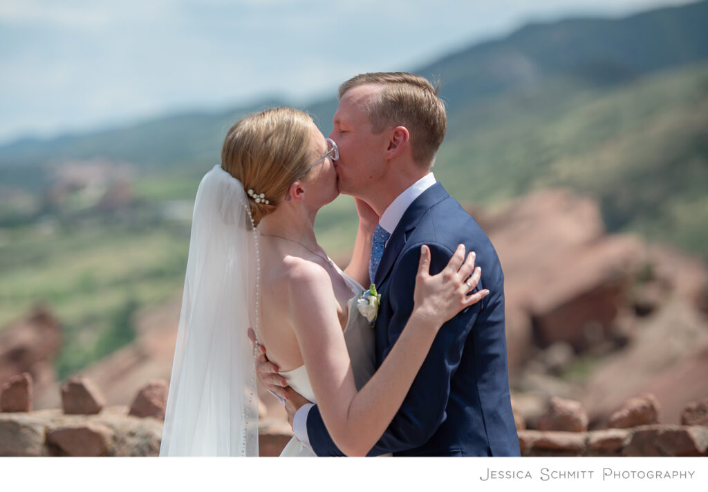 Hannah shares, “We chose to get married in Colorado because it is where we met, where our story started. As soon as we looked into Red Rocks as a venue we knew it was perfect for our ceremony. It is a place that was already close to our hearts. Music has always been an integral part of our lives and our relationship and we’ve attended many concerts at Red Rocks. It was also important to us to pick a ceremony location with beautiful scenery and this view cannot be beat. We were grateful that Colorado was a place that our grandparents could travel to. They’re really important to both of us and to be able to share the day with them meant everything to us.”