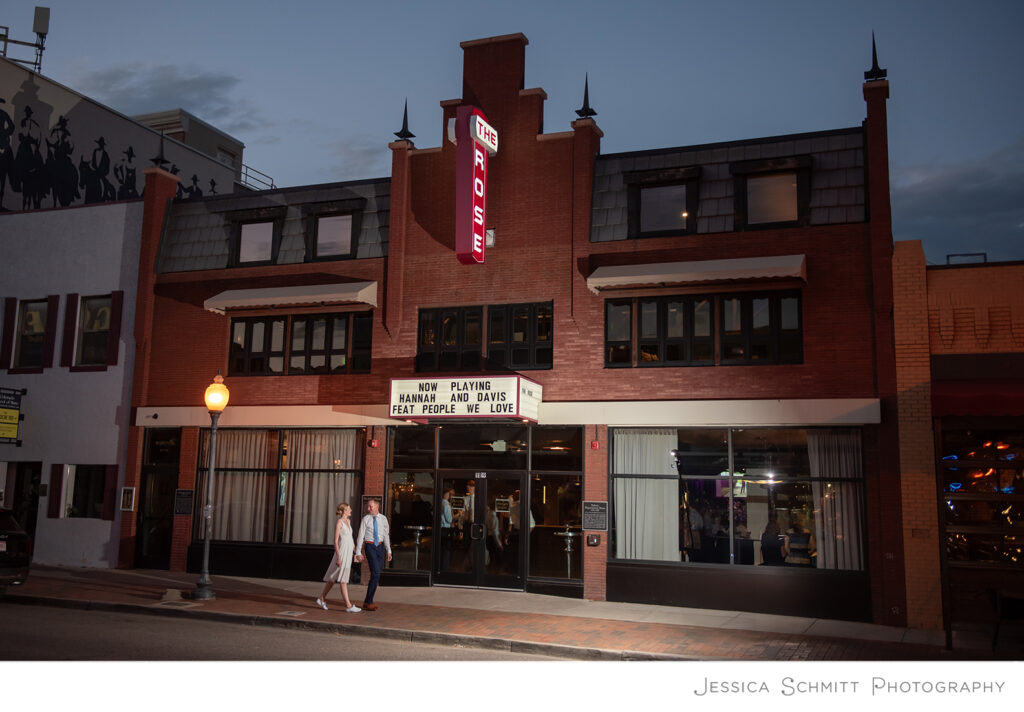 Hannah shares, “Davis is a drummer so he was very excited to get a band for our reception. We wanted to find a reception venue that would easily accommodate and showcase a band. The Rose was the perfect choice as it is also a concert venue. We loved having the live band for dancing and Davis even got to sit in and play a couple of songs with them!”
