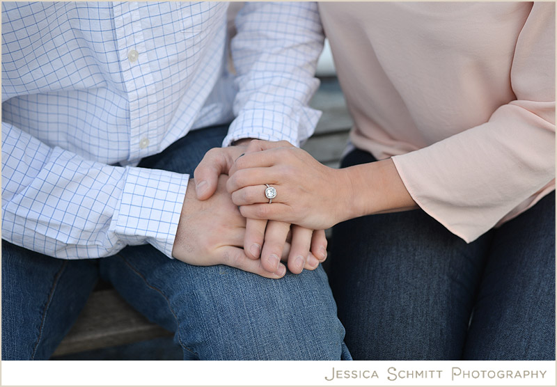 Lauren shares their proposal story, “Sean and my twin sister talked for weeks about getting the ring and how he would propose. My sister and I tell each other EVERYTHING and the fact that she kept this a secret from me is still hard to believe. Sean had a plan to throw me off for Christmas and told me that he was buying me a kettlebell for Christmas. He really did get me a pink kettlebell (which I love!) but that wasn’t the only gift. I think Sean was going to wait until Christmas Eve or Christmas to propose but Sean (and my sister!) couldn’t wait any longer so the weekend before Christmas, at 11:30 at night, he put the ring under my pillow and told me that he had a small present for me under my pillow. I was so excited and did not sleep at all that night.”