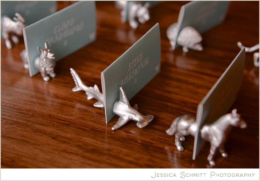 These escort cards were so cool! Everyone had their own little silver animal to take them to their seat.