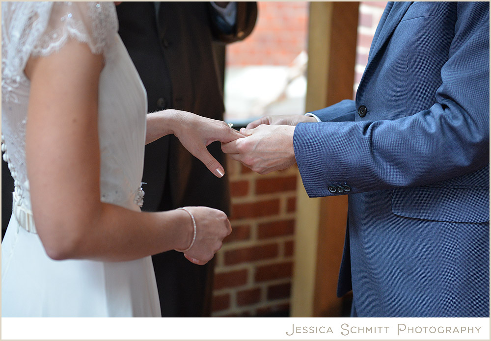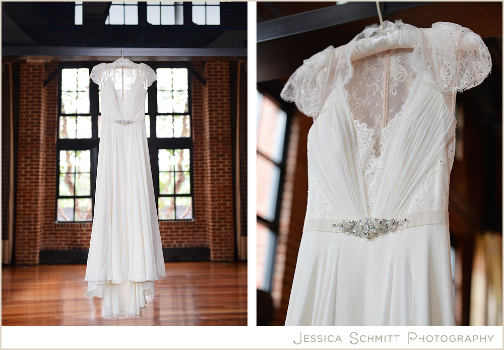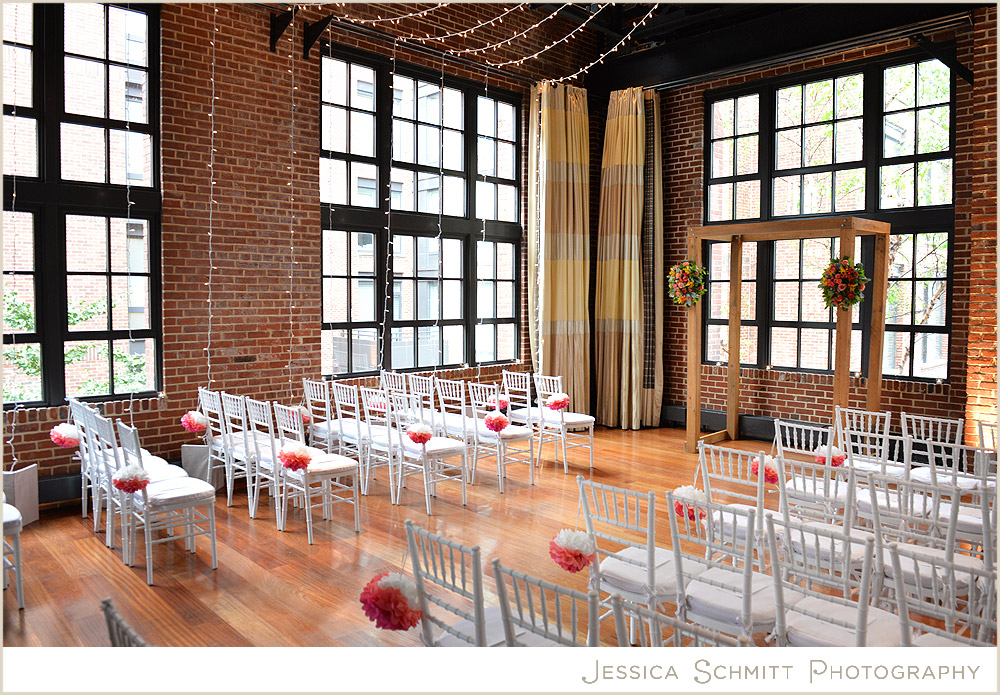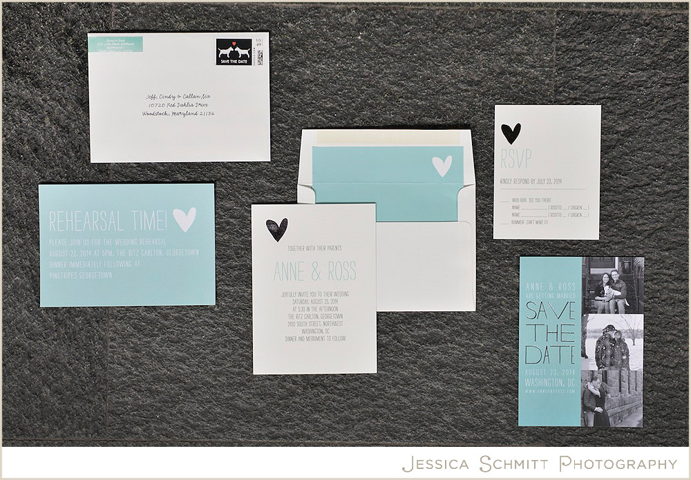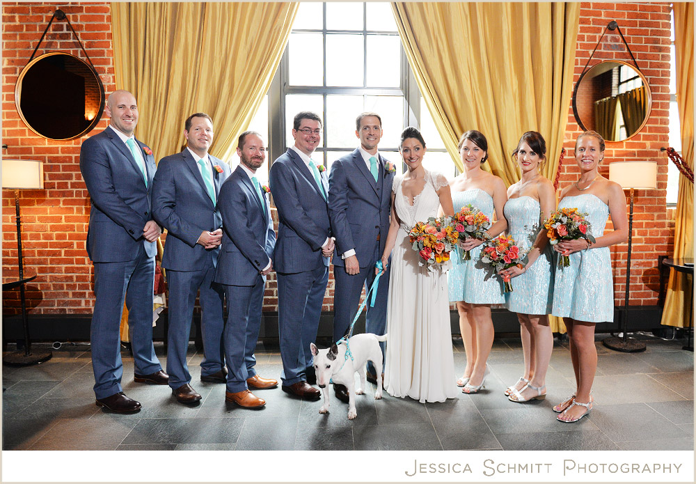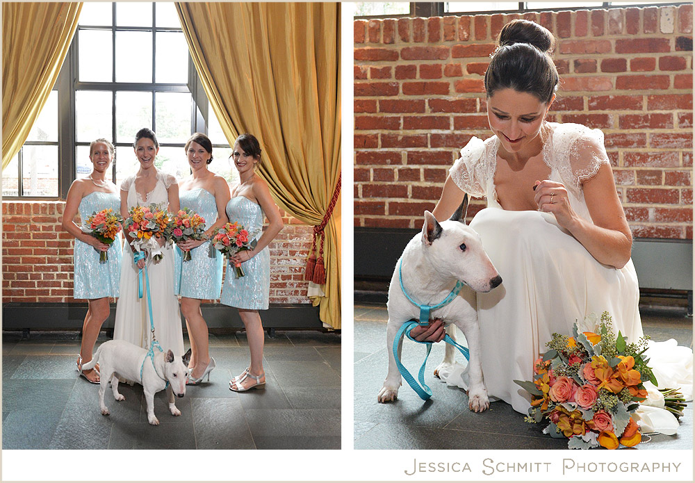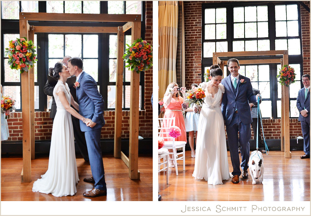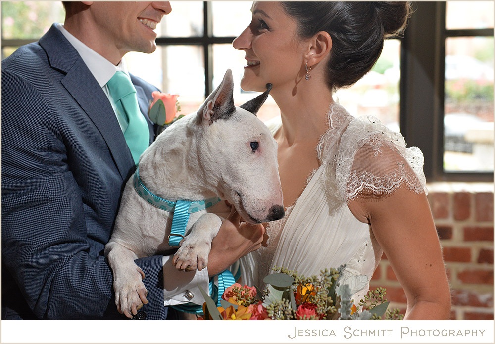 When it came to choosing a venue, the Ritz was the perfect fit! It’s a favorite location, a pet-friendly hotel and a gorgeous site. Ross continues, “We love Georgetown, and the Ritz, while in Georgetown, is tucked away just enough so that you aren’t bombarded with the busyness of M Street. We both fell in love with the look of the hotel and especially the Fahrenheit Ballroom. It has a very upscale and clean look, with an amazing industrial feel. We also needed a place that allowed dogs as Bridgett was going to be staying with us and be in the wedding. Finally, we wanted a place where we could do everything on site (rooms, ceremony, cocktail hours, and reception).”