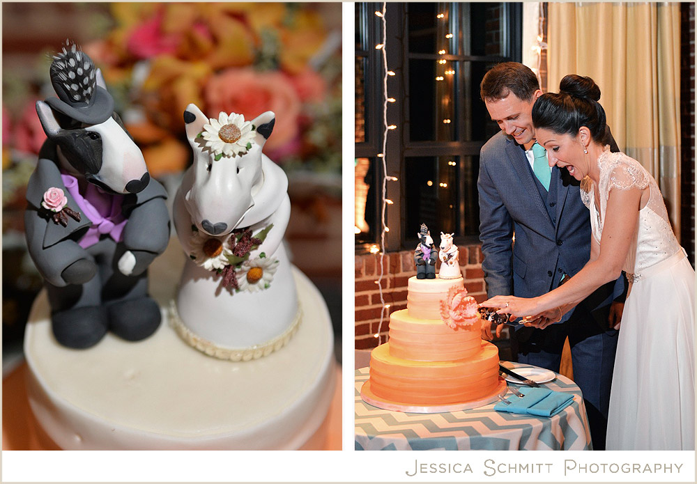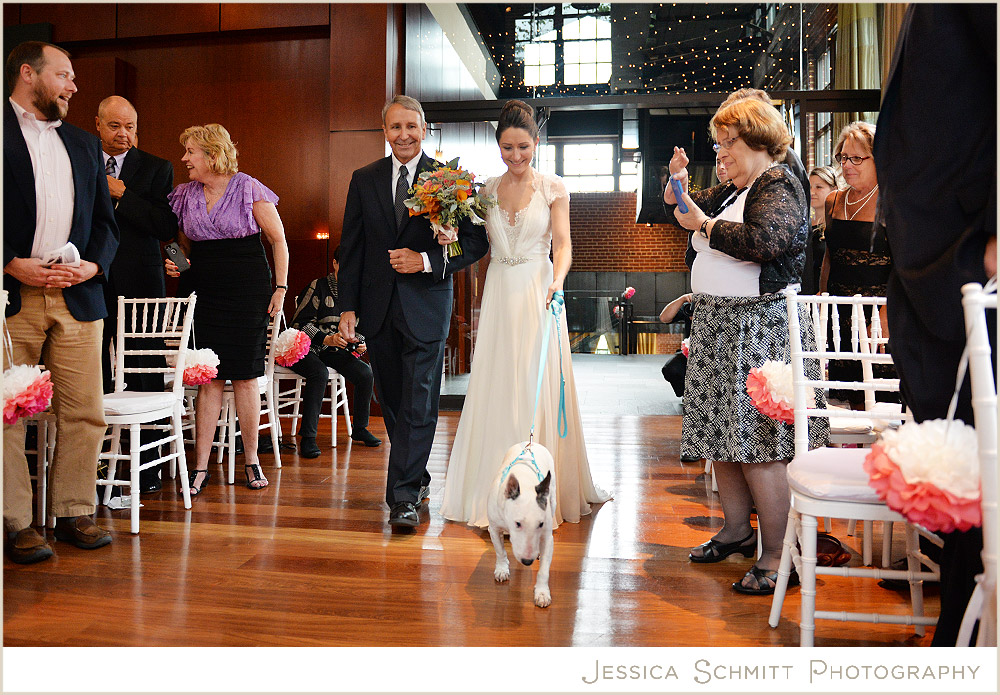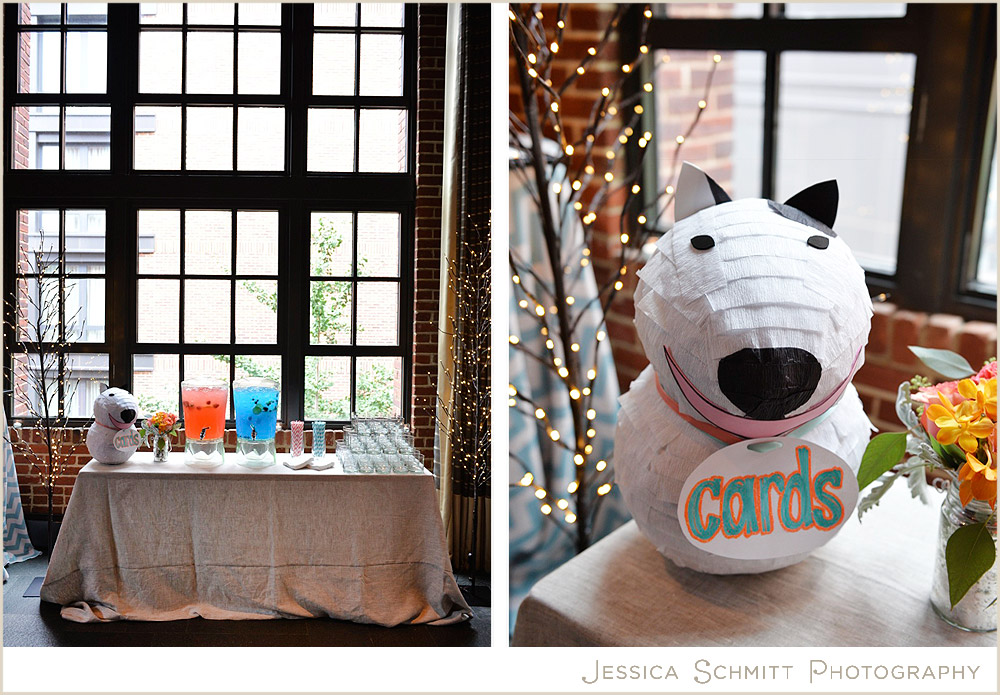 As you can see from a lot of the details, the cufflinks, cake topper, and card piñata, their dog is very important to them. Ross shares his favorite moment from the day that, of course, includes their four-legged family member, “My favorite moment from the day was watching Anne and Bridgett walk down the aisle. Bridgett is our little girl and Bridgett does what Bridgett wants, so we were very nervous about how she would perform. She was AMAZING, and knowing how important it was for Anne to walk with Bridgett was so special.”