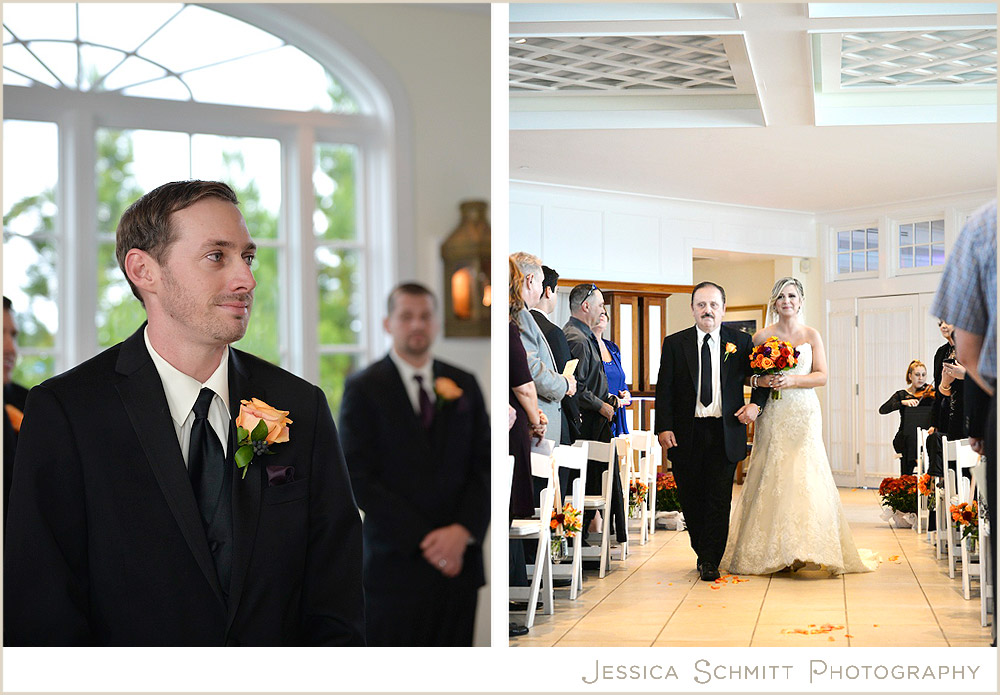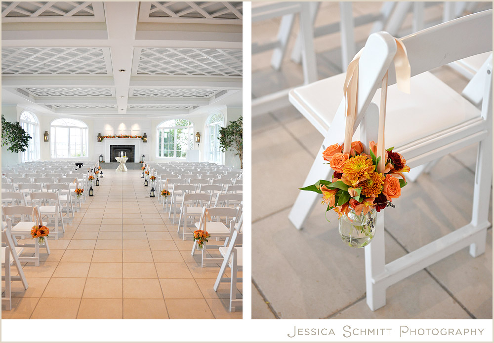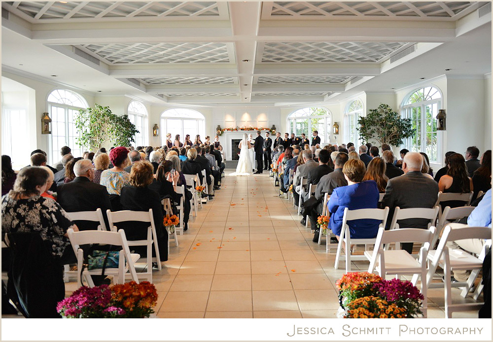 The Chesapeake Bay Beach Club sits along the Eastern Shore’s waterfront. The ceremony room was full of sunlight and colorful autumnal flowers.