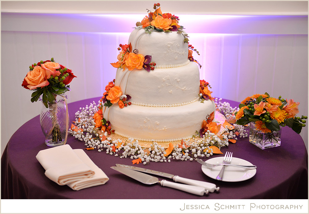 Autumnal wedding cake orange purple
