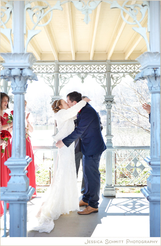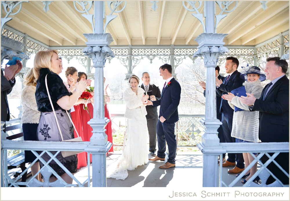 Charlotte and Jamie eloped all the way from Wales to have a Central Park wedding. Charlotte’s father walked her down the aisle of friends and family to their ceremony at the Ladies Pavilion.