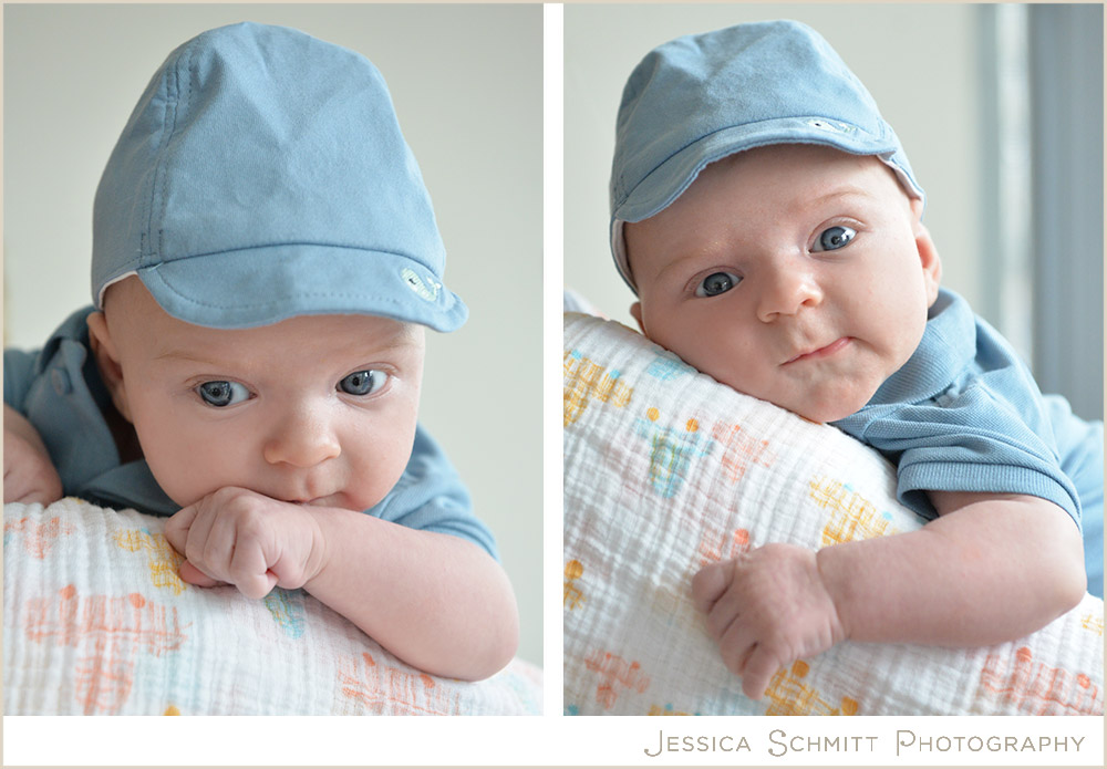 At six weeks old, Samuel already has quite the personality, as demonstrated during the photo session. He is a morning person who smiles and laughs from about 4:30am until 10:00am. He is a bit grumpier in the afternoon! He loves being outside, just like his mom and dad – so when he is upset we just have to get him into the fresh air and all is right in the world. It’s a blessing to live in the city and be able to walk everywhere. We love to visit botanical gardens or the sculpture garden or just walk to some of the local parks on Capitol Hill and enjoy some sunshine! We are looking forward to getting him to the zoo and on some short hikes in the near future. We love every day with him and watching him grow. The time is going so fast already, but we are so excited for every new moment of this adventure called parenthood.”