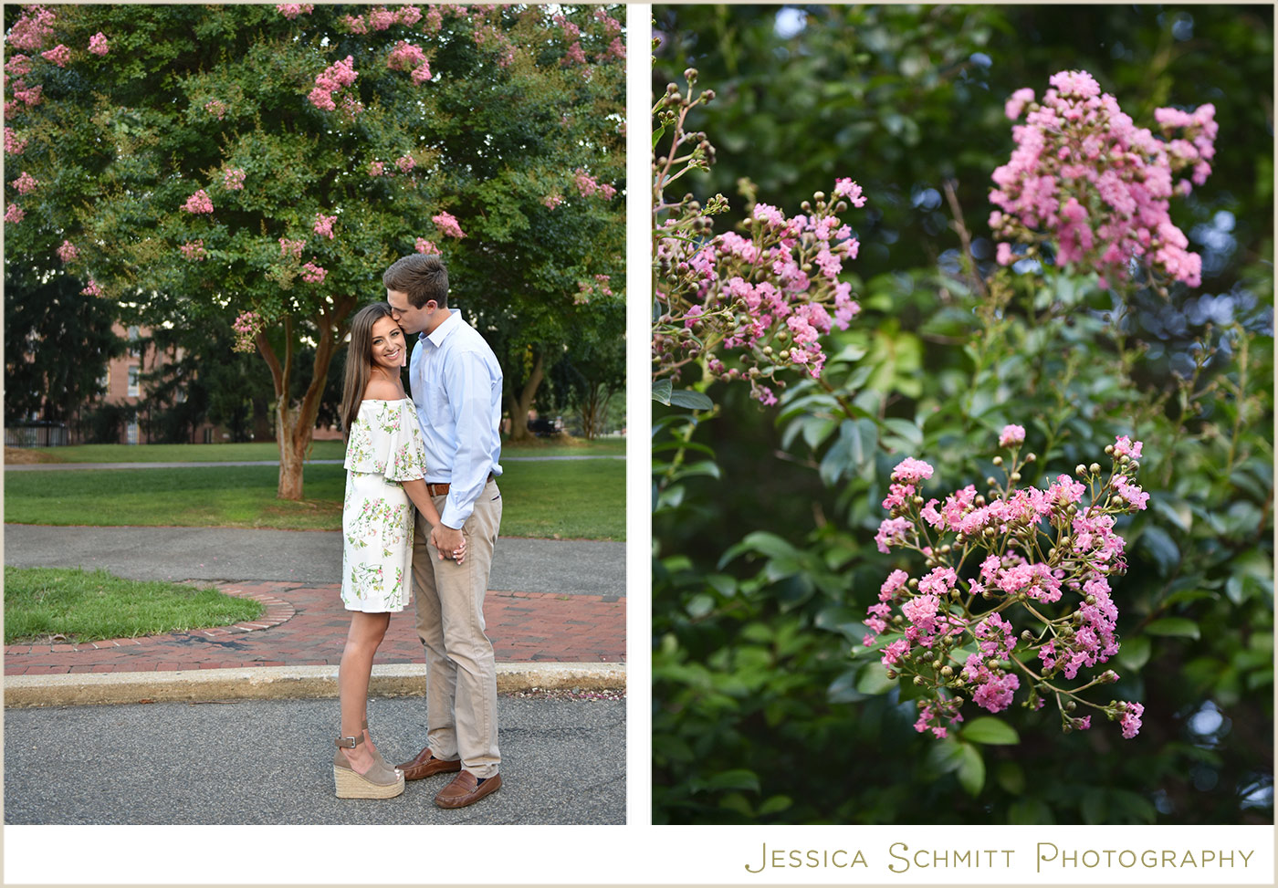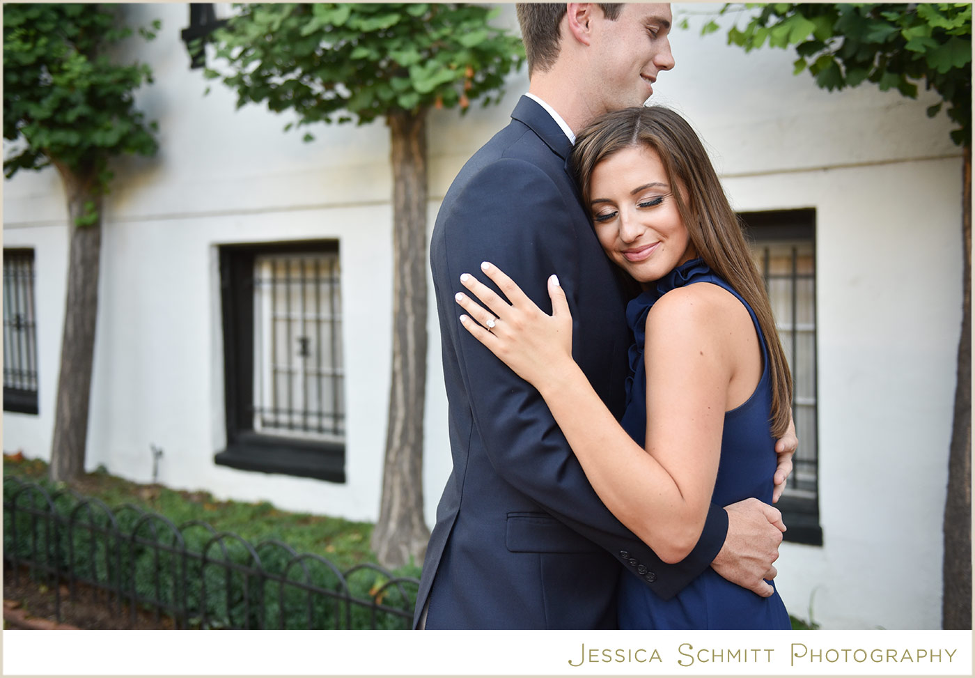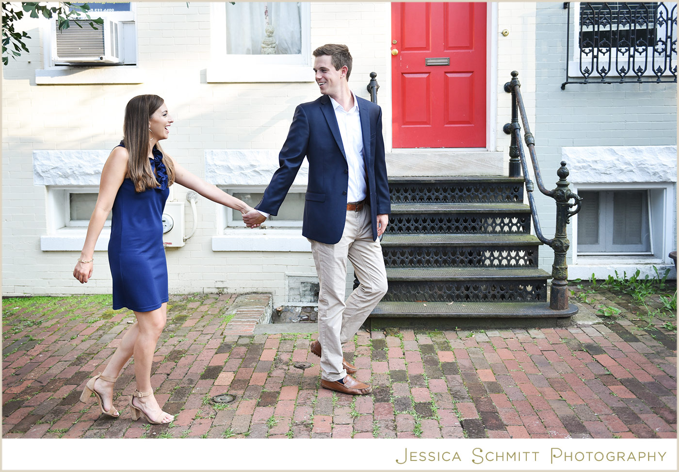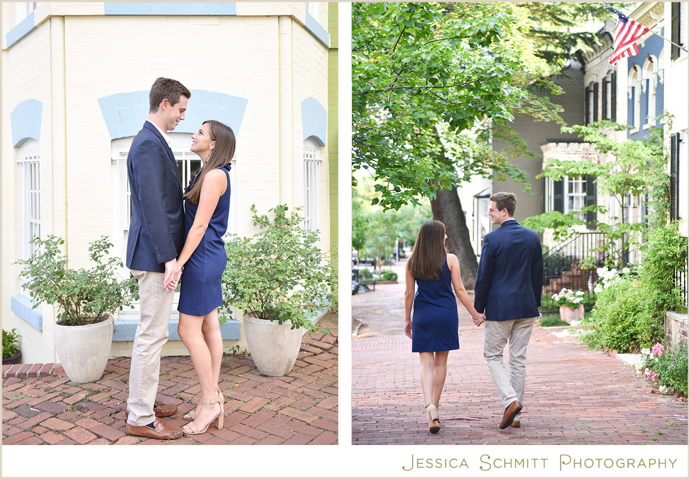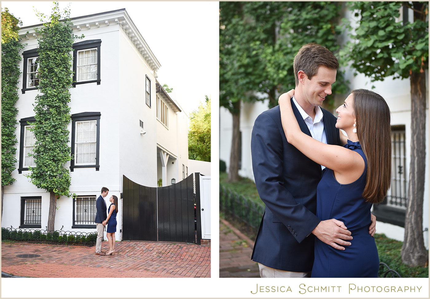 Kelly continues, “We are getting married at a church in Georgetown this coming spring so we felt it was only appropriate to have our engagement shoot in the neighborhood as well. After a week of rain in July, the sky cleared and we had a beautiful evening shoot on P Street and on the grounds of Georgetown University! We hope our wedding date is just as lucky with the weather. We are so excited to tie the knot in front of our closest family and friends at a place that holds so many special memories for us.”