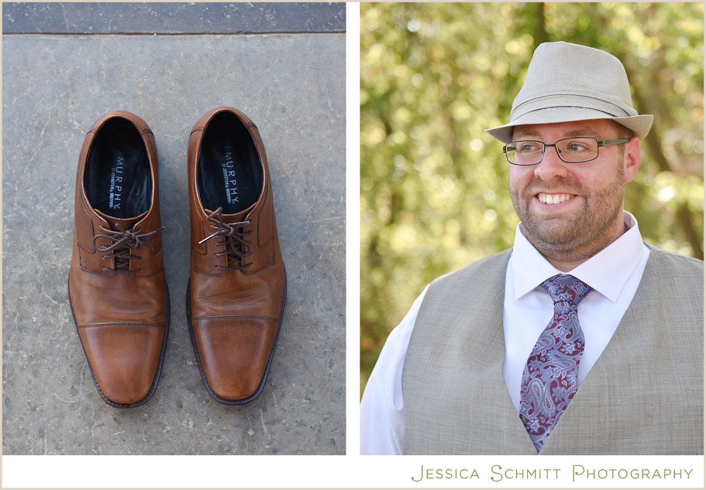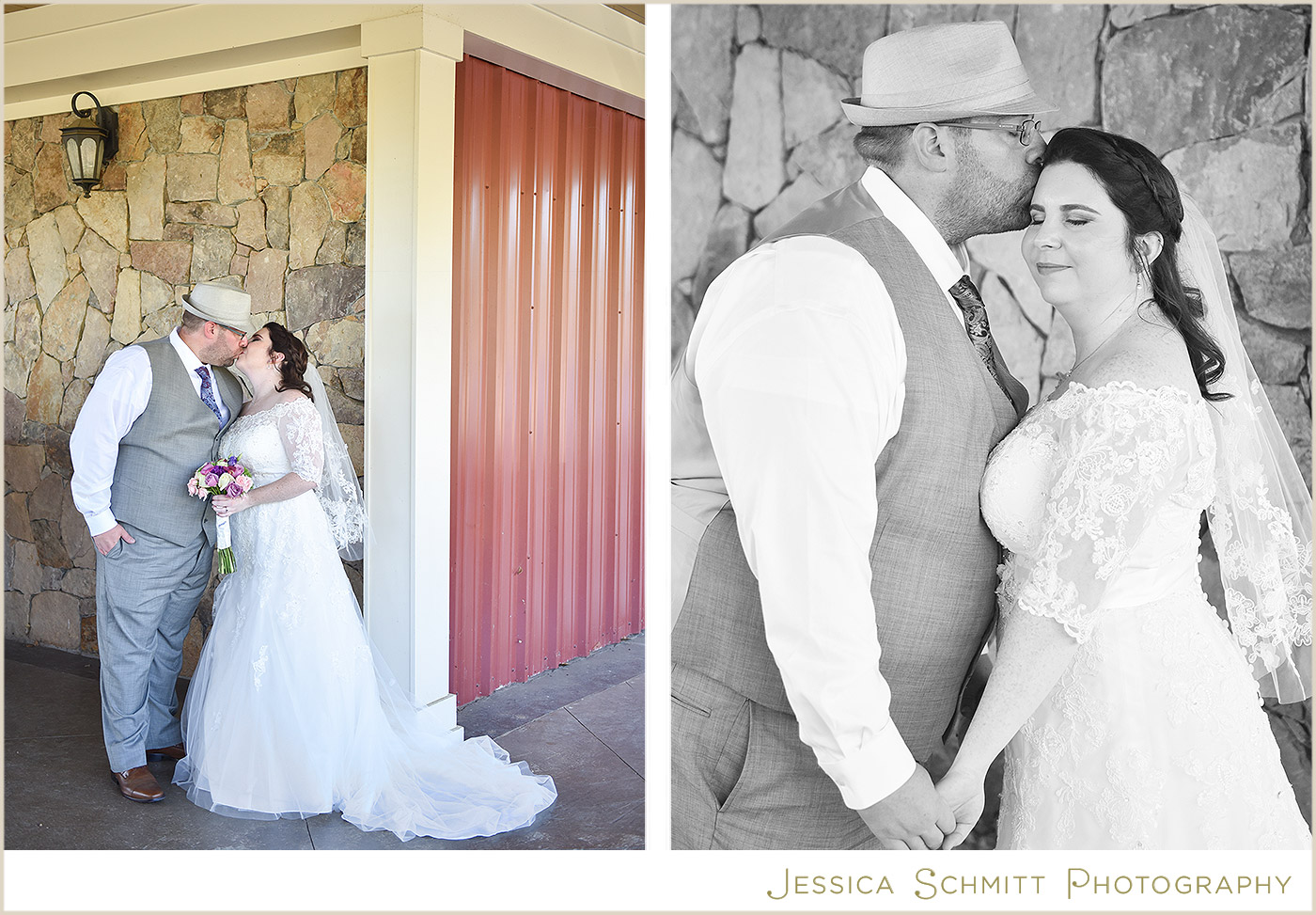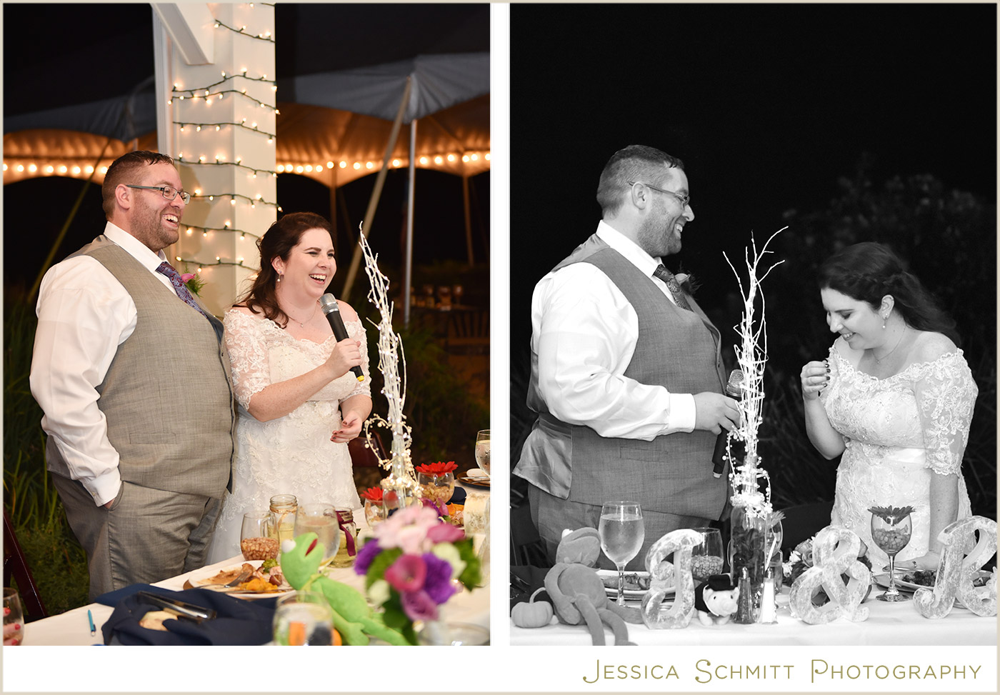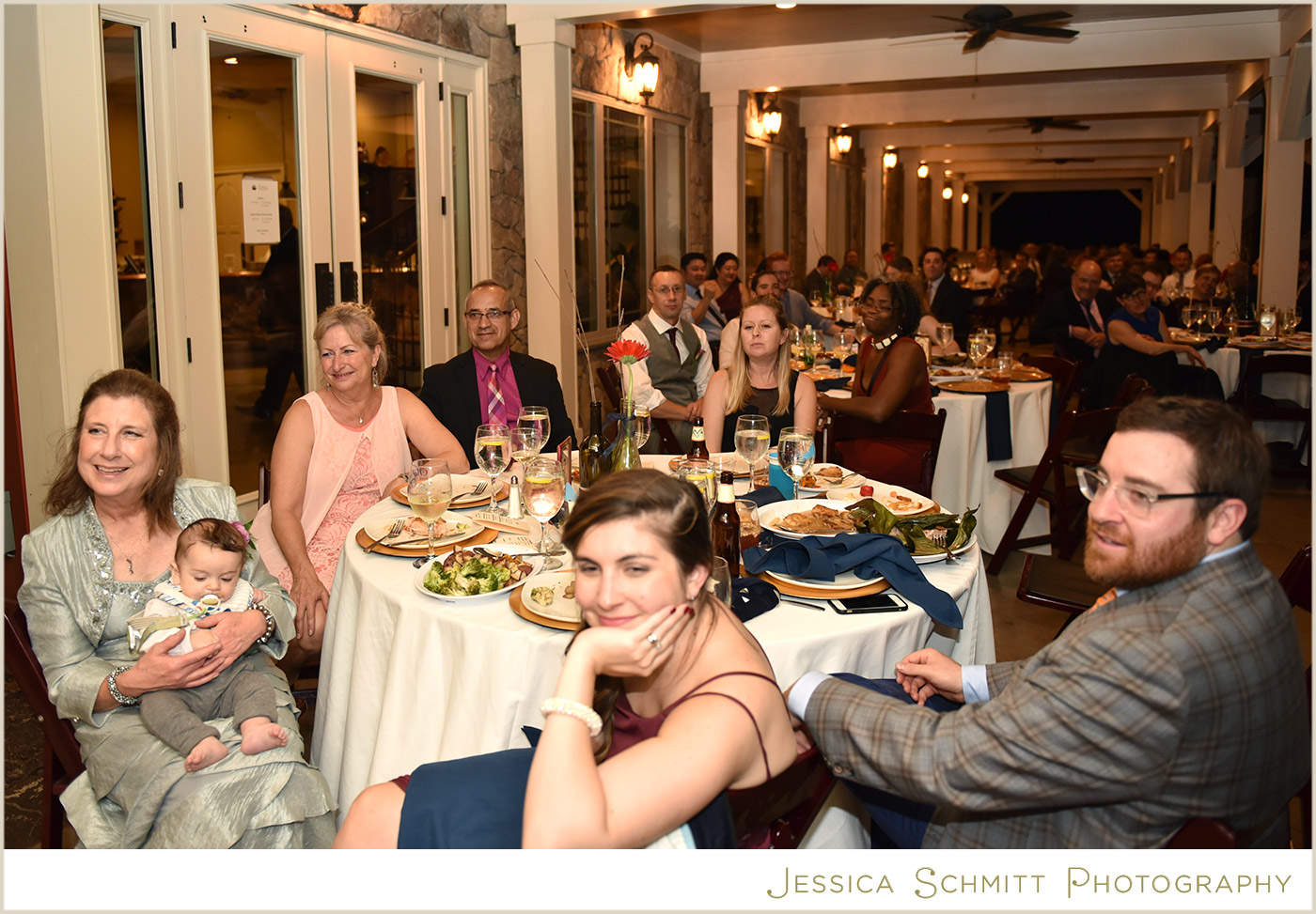 Cana Vineyards was the perfect place for their wedding. Rachel shares, “After Christmas, we somehow settled on a date for the wedding (10/7/17), though I personally think Jim tricked me into the date. Jim did quite a bit of searching to find a venue that was available and within budget. We finally settled on Cana Vineyards because it had such a wonderful view and wasn’t too far from our second favorite Virginia State Park, Sky Meadows State Park. When planning the wedding, we wanted it to be very personal and reflect our personalities as much as possible, which is why we went with a National Parks/Harry Potter theme. We (and by “we,” I mean “I”) made all of the centerpieces from recycled wine bottles; the pieces of wood came from a friend of Jim’s, who had cut down some trees near his house and made the pieces for us, to which Jim glued the bottles.