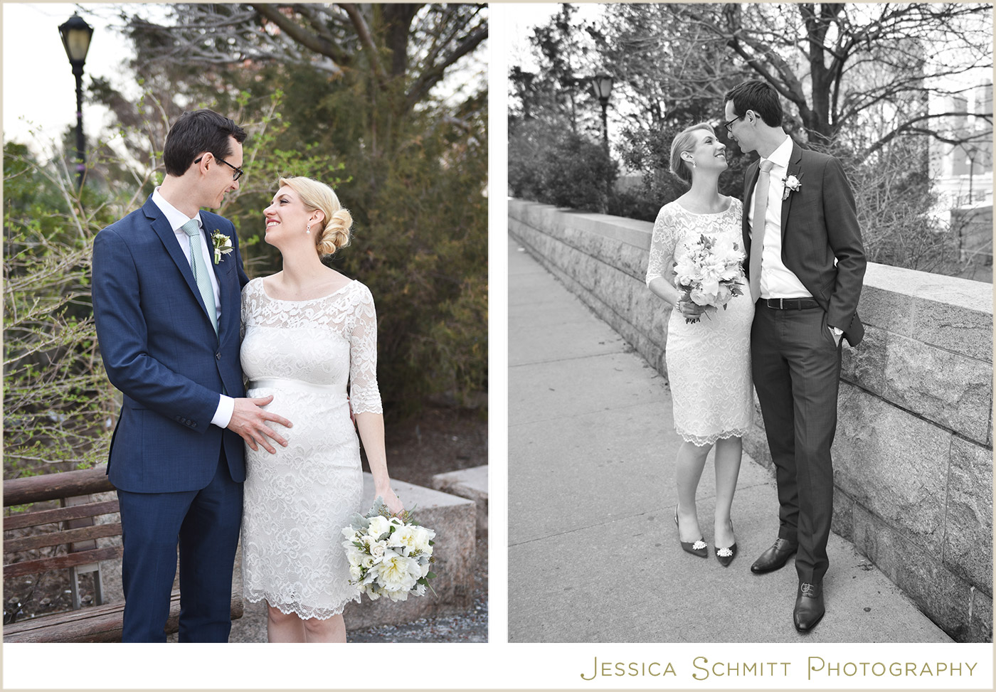 Erica shares, “Pierre and I met through friends on his rooftop in the East Village as he was throwing a party with his roommate, who was a mutual friend. I went to the party with my friend, Mary Catherine, who officiated our wedding as she played a role in bringing us together and has been a very close friend to both of us throughout our relationship.