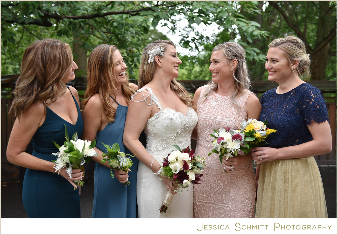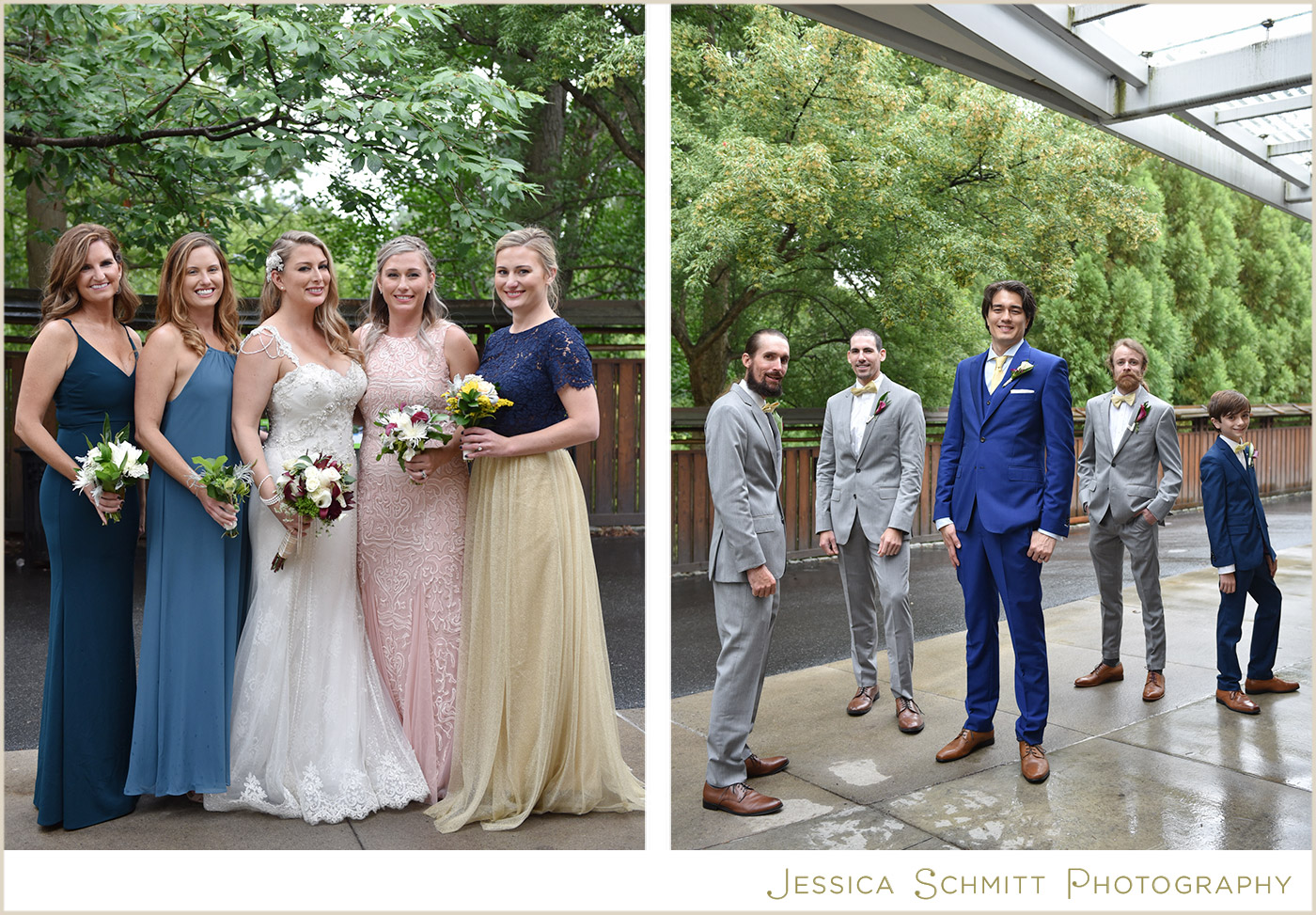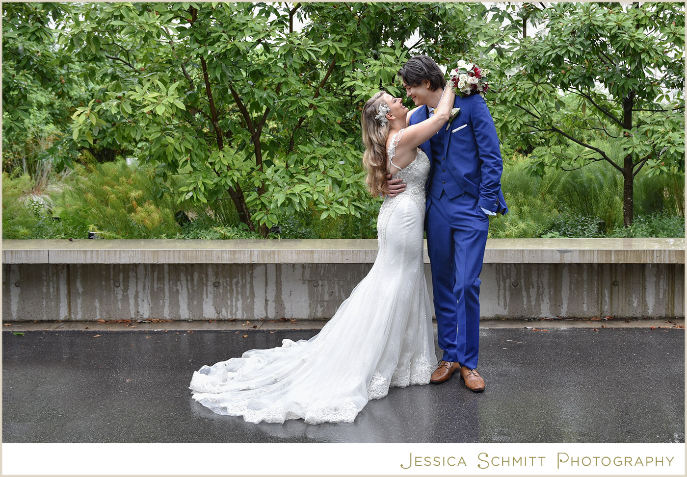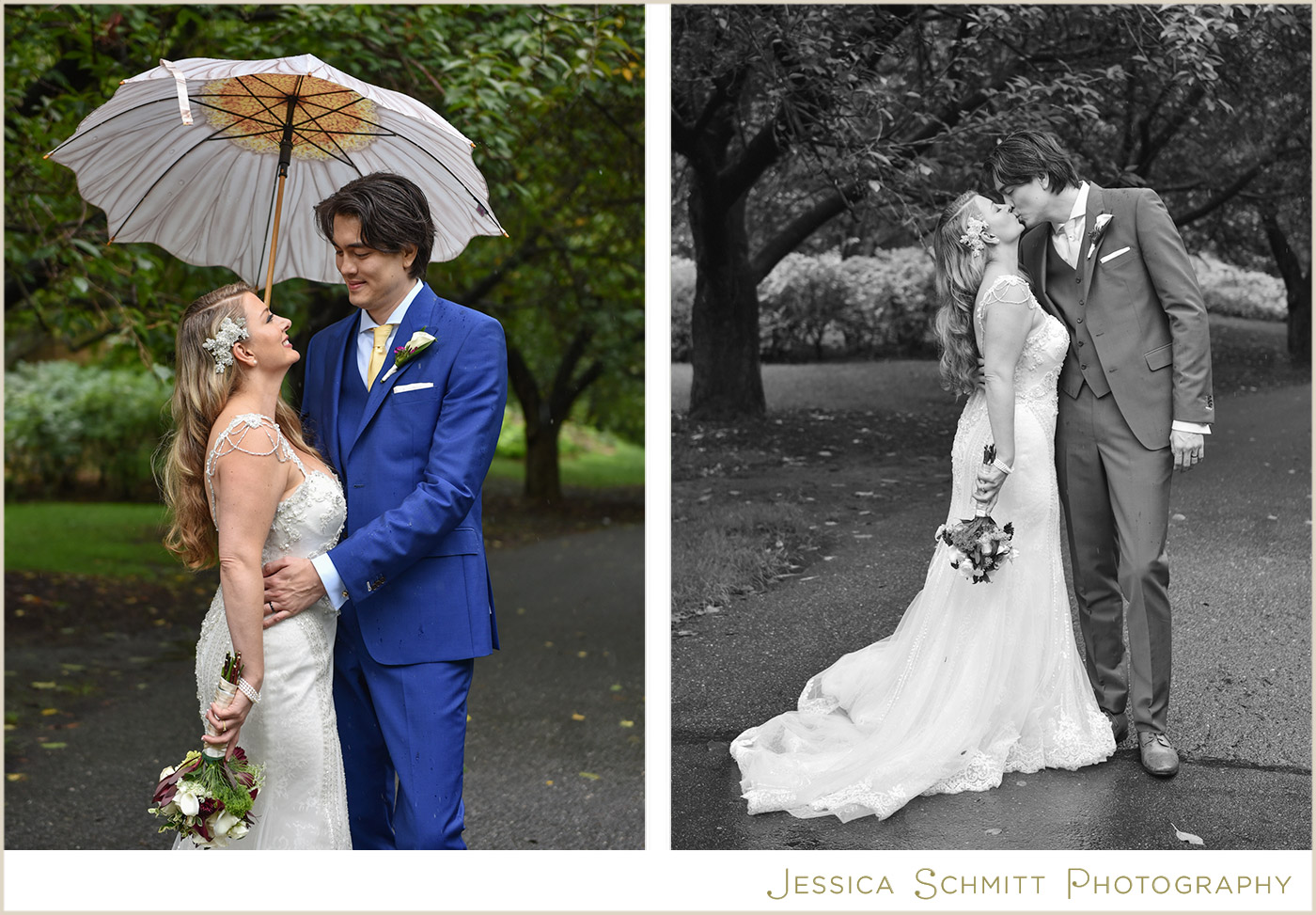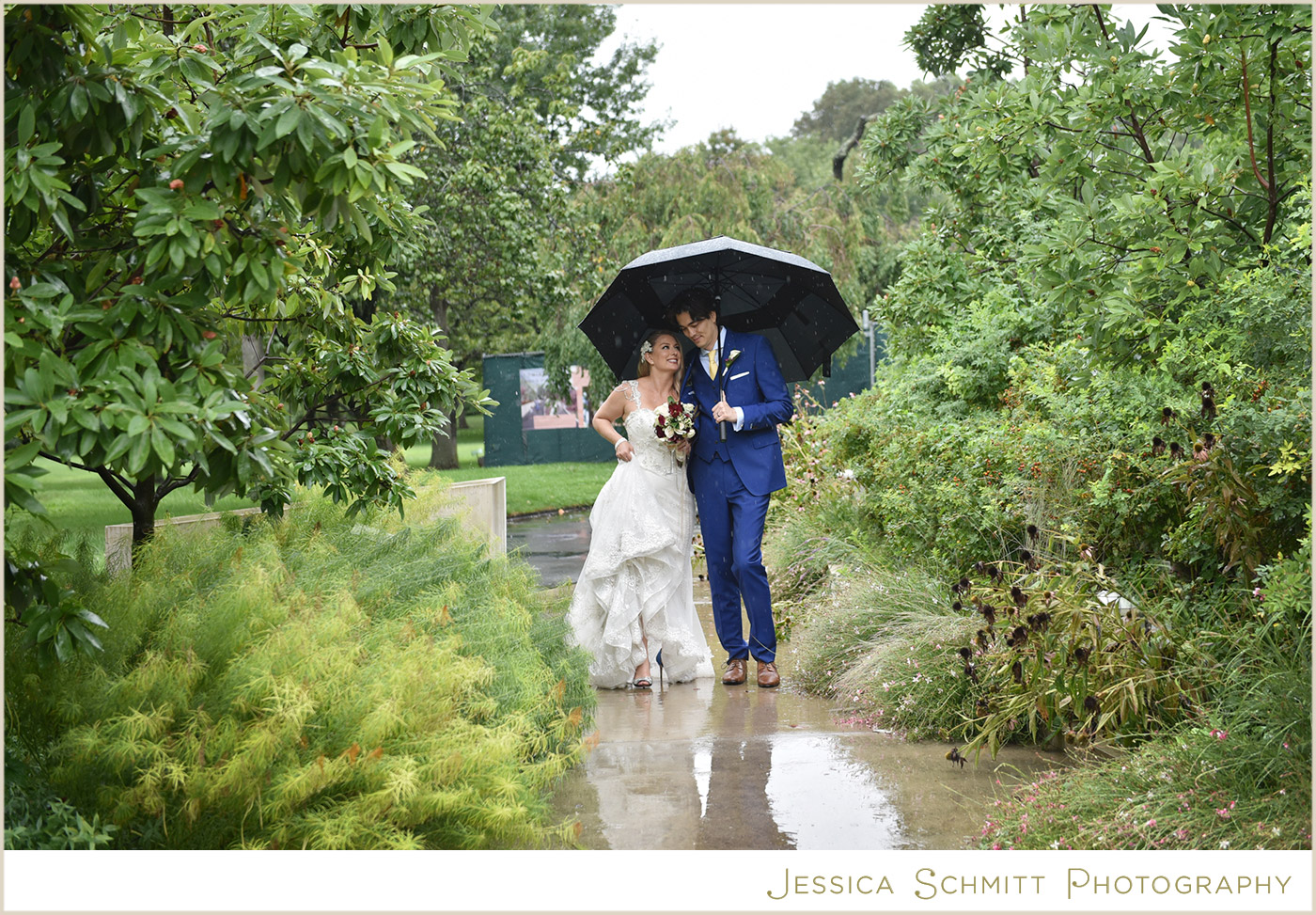 Nichole and David chose the Brooklyn Botanic Garden for their wedding because it’s one of their favorite places. Nichole shares, “It is truly a quiet refuge from the insanity that can be New York City. The garden served as a beautiful backdrop to a unique untraditional brunch reception despite the weather not cooperating as anticipated. We were fortunate with an amazing team and family that pulled everything together and made it especially memorable despite the rain. Our ceremony was accompanied by live music from the terrific string quartet, Sterling Strings, whom David and I felt added the perfect ambiance! A close family friend performed the ceremony that was intimately crafted and paid warm tribute to my grandparents. The “I do’s!” were immediately followed by a reception hosted by Patina Events. Guests enjoyed a ‘New York bagel bar,’ handcrafted cocktails and a delicious seated meal. The ambiance was further carried out by the soothing Jazz duo of Sydney & Jake leading people to the dance floor. As a unique touch, guests were also waiting in line to get their wedding faces immortalized by the very talented caricature artist, Kaheim Archer. We could feel all the love in the room and we are forever grateful to all our friends and loved ones, and those who worked to make our very special day a wonderful success!”