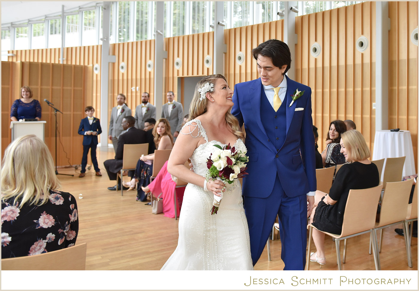 The weather forecast was not on their side, but the atrium was a wonderful alternative to the outdoors. Natural light beamed throughout the leaf-shaped room and the couple was surrounded by so much love.