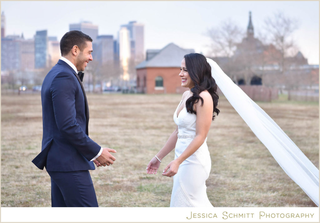 My favorite moments of the day included seeing John for our “first look.” In the 30-degree weather, my adrenaline kept me warm enough to be able to show John my wedding dress outside, in front of the beautiful skyline.