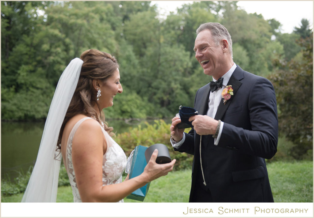 Mindy had a special surprise for Michael. She shares, “He was certain I got him a watch as a wedding gift. Instead I bought him a necklace he had admired in Peru (the week before the wedding) but didn’t buy and put it in an empty watch box. It was great to see his surprise (and confusion) when he opened the gift. We chose the cufflinks he wore for the wedding together in Peru as well.”