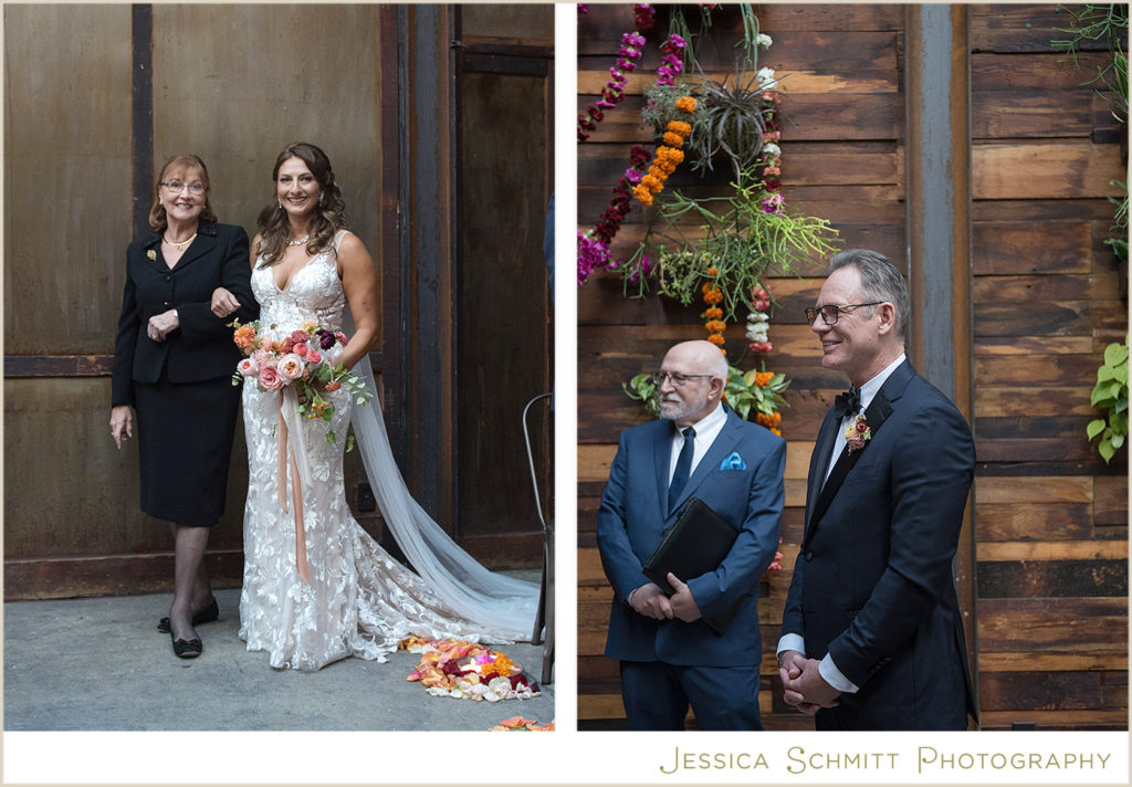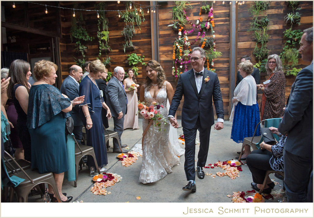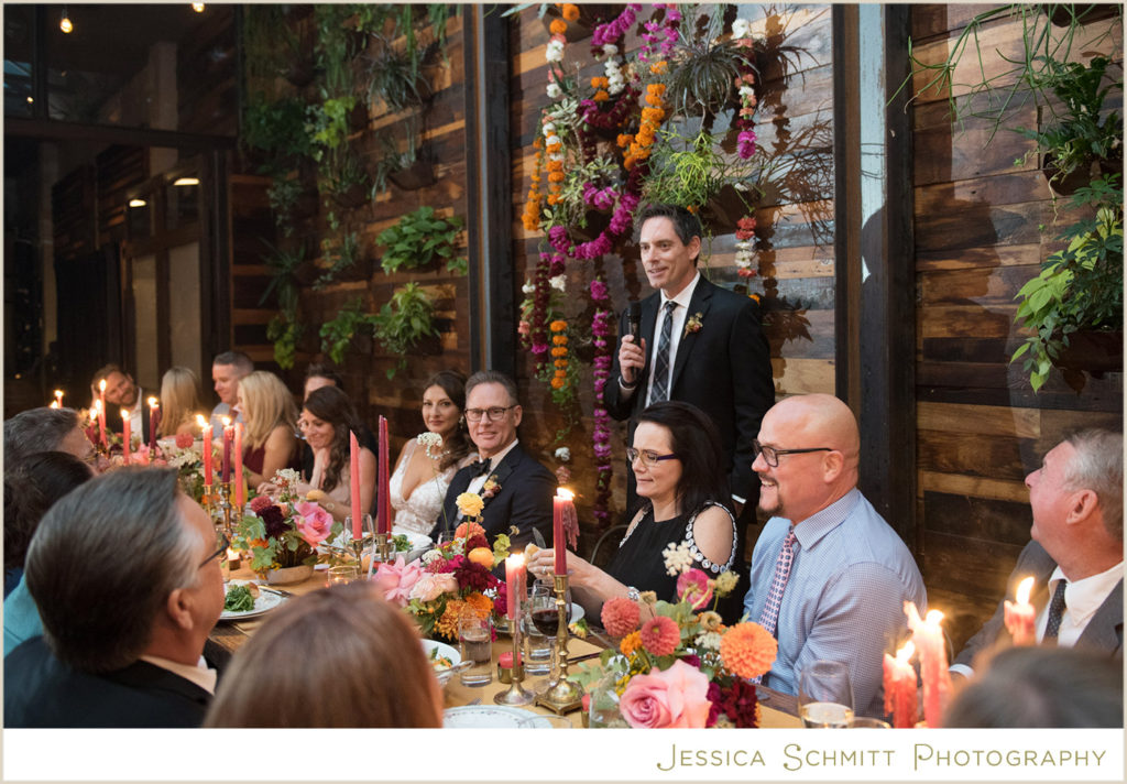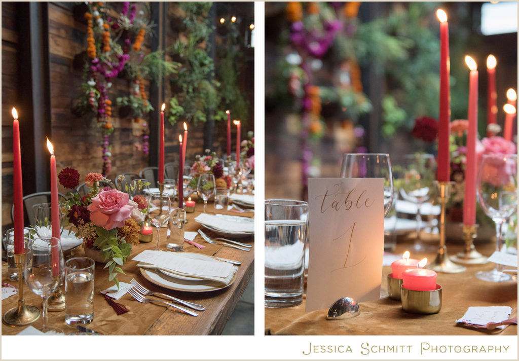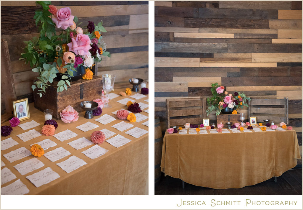 Mindy shares, “The wedding was better than I ever imagined it would be. My fascination with Indian culture and weddings inspired the decor and color scheme for our wedding. Kehrin made this vision come to life with a hint of Indian tradition paired with a color palette that was bright and vibrant with beautiful traditional floral garlands. The winery’s warmth from the reclaimed wood succulent wall, paired with the modern concrete floor and light filled atrium made for a perfect venue for what turned out to be a dream wedding for me. Seeing the room set for dinner prior to the guests entering brought tears to my eyes. It was magical and everything I imagined.