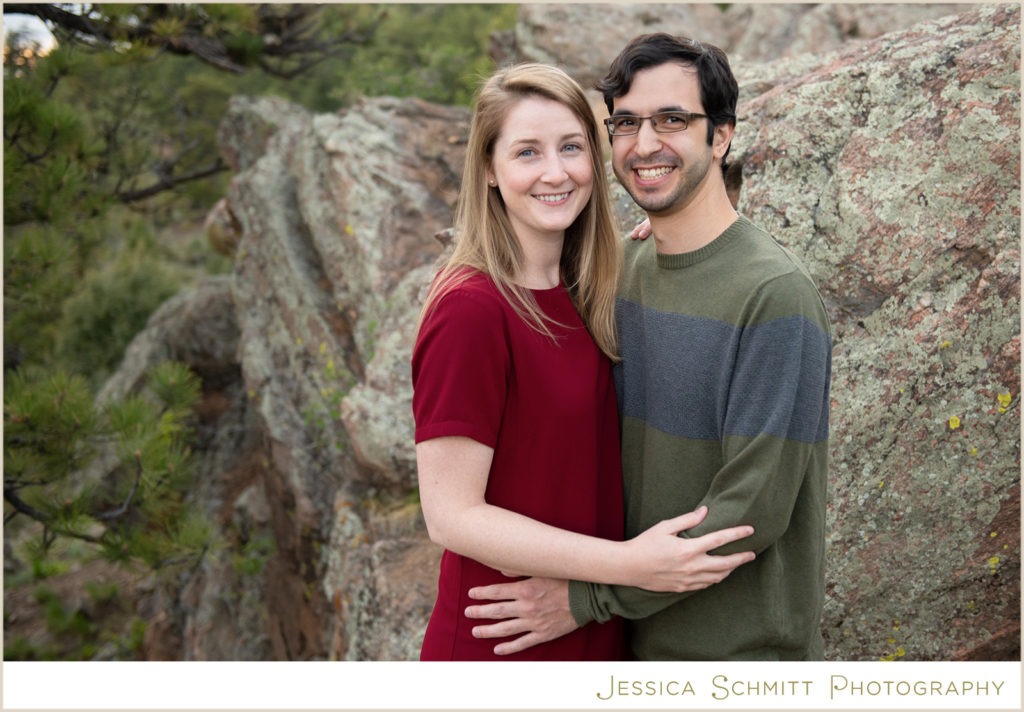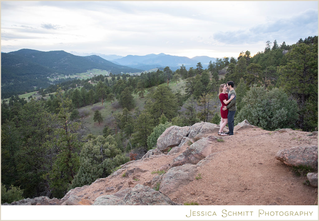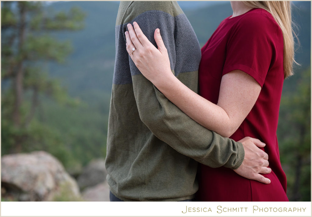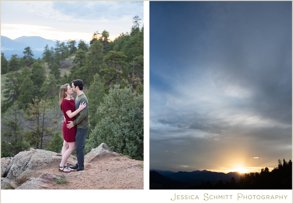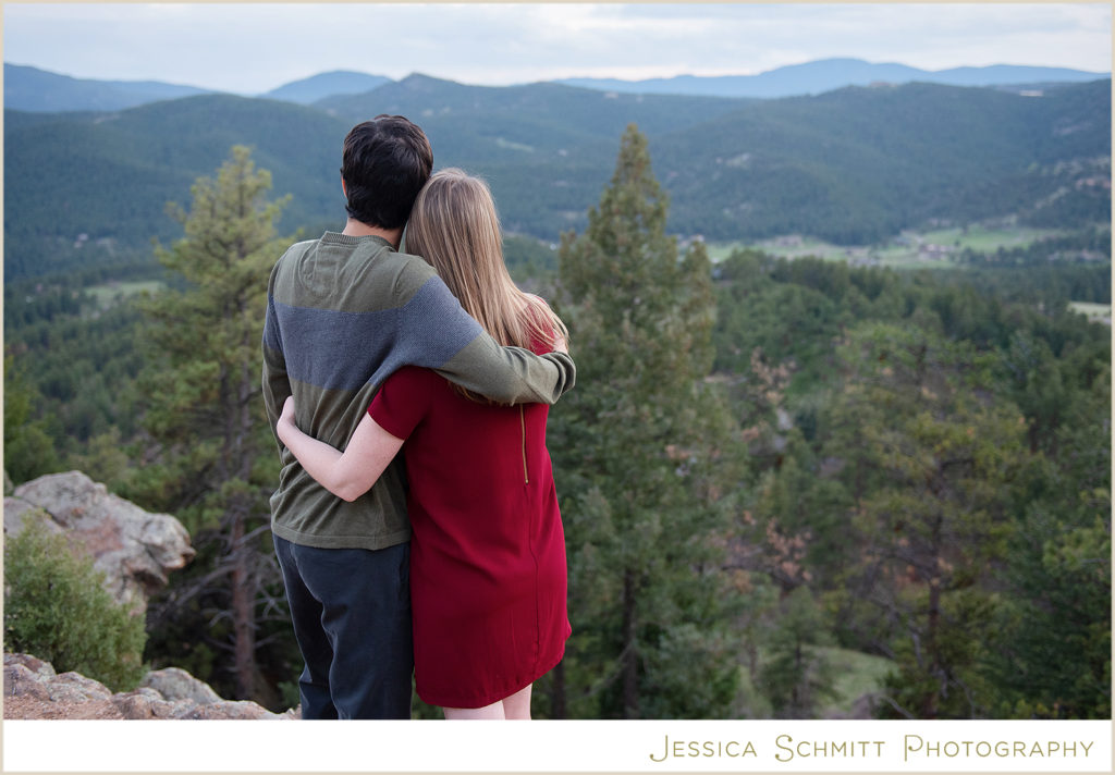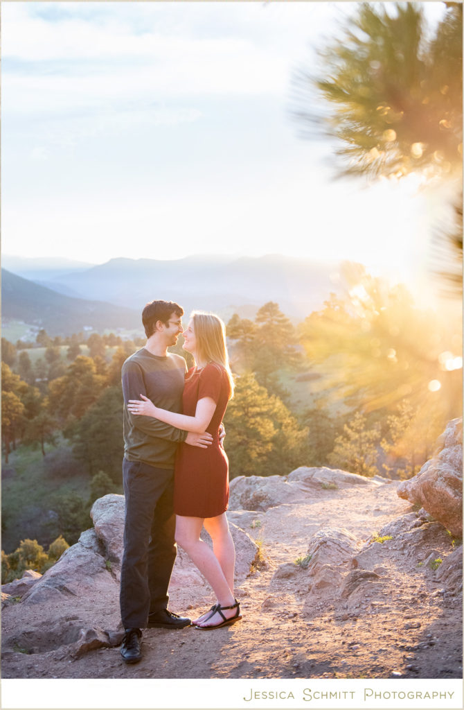 My career brought us to Colorado at the very beginning of March 2020, and even though we couldn’t get married at the end of March as originally planned, I wanted to do something special to celebrate us and our new life in Colorado. I am so glad I found Jessica to shoot our engagement session re-take! Being new to the area, trying to pick a location for a photo shoot was a bit overwhelming, but Jessica suggested so many beautiful locations to choose from. I was drawn towards Mt. Falcon Park because it reminded me of our proposal weekend and the hike where it all began. With our one-year engagement anniversary right around the corner, it was the perfect setting to bring back all those memories of a truly joyous time in our lives.