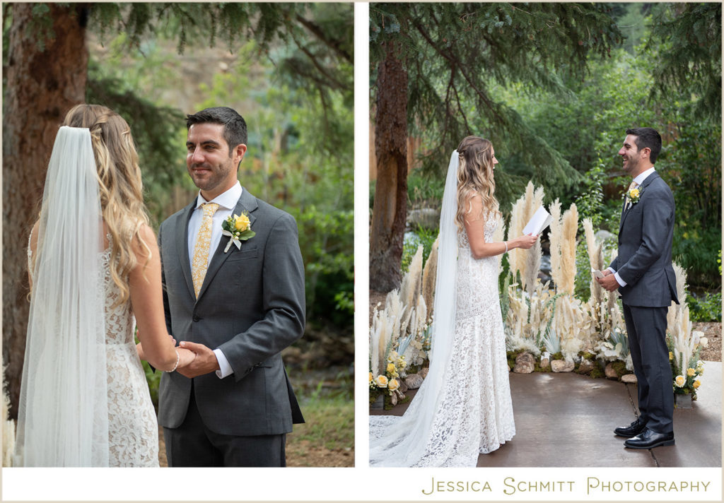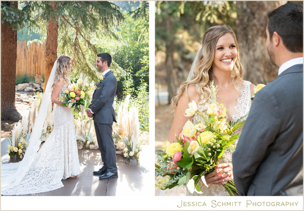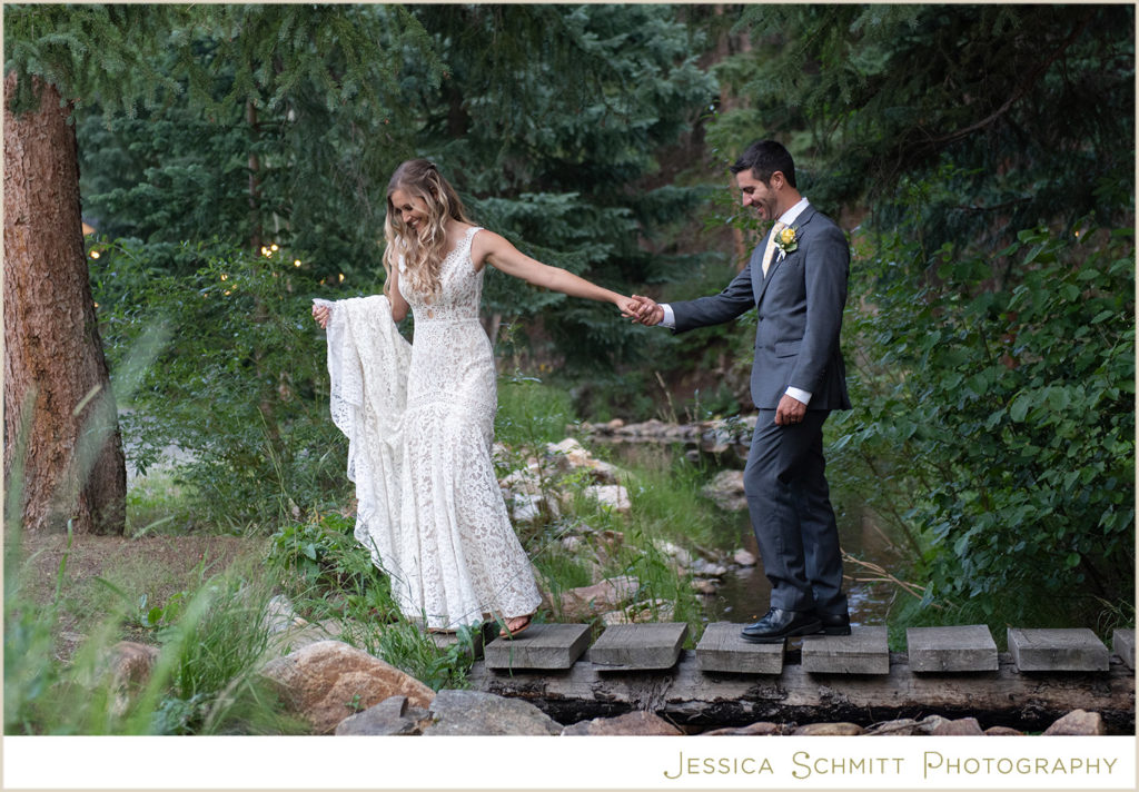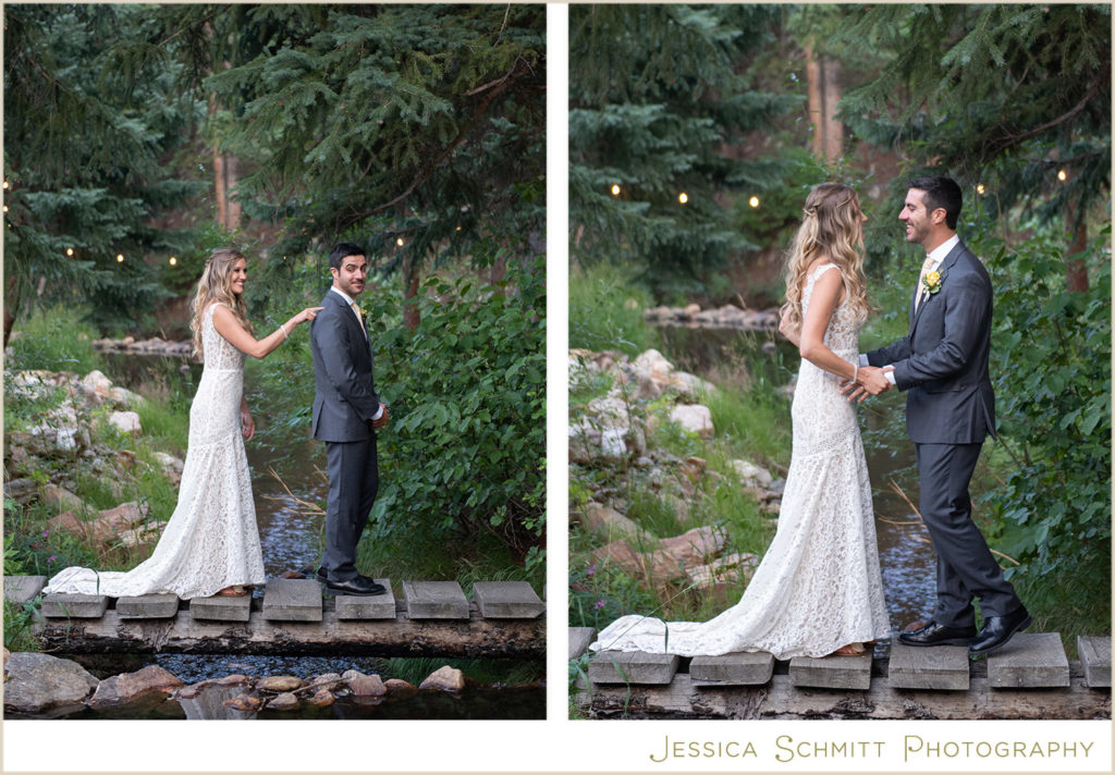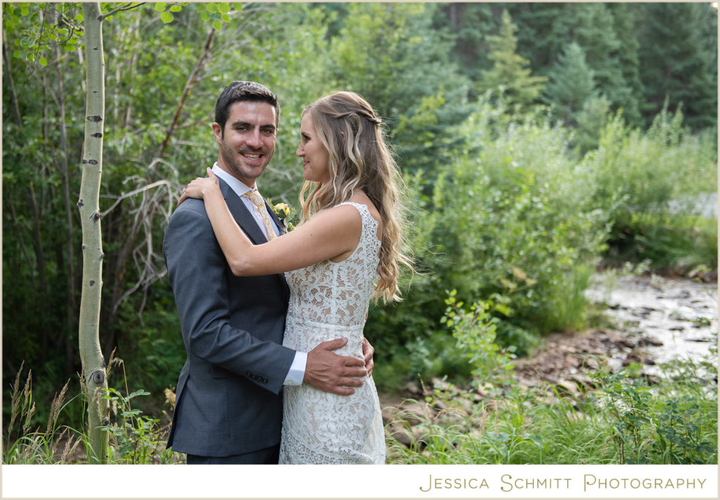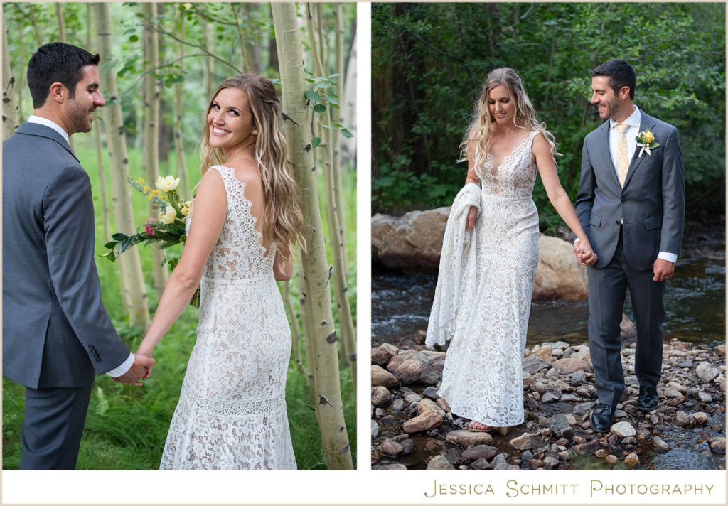 I love shooting at Blackstone River Ranch because the property includes so many amazing spots for wonderful photos–the river, of course!, towering evergreens, a field of Aspen trees, romantic string lights, a wooden bridge, a large sail cloth tent for a reception and so much charm.