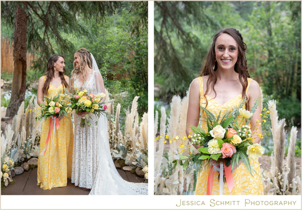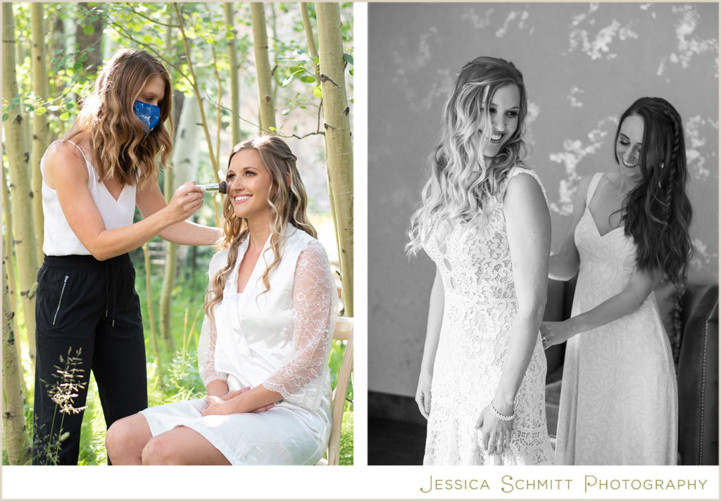 The hair and makeup styling by Wise Artistry gave the bride and bridesmaid a perfect Colorado summer look–effortless, natural and beautiful.