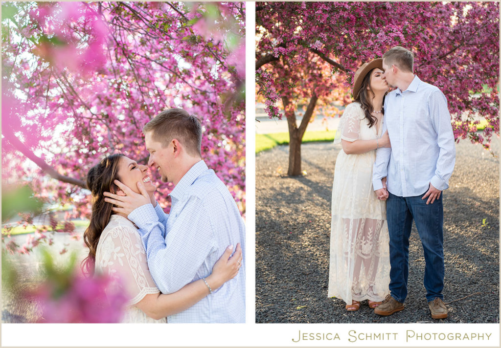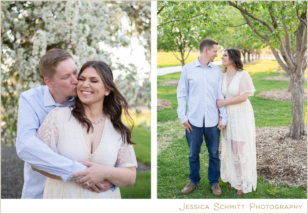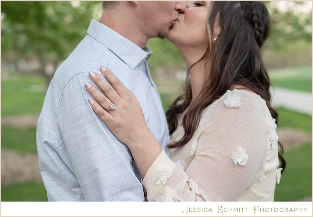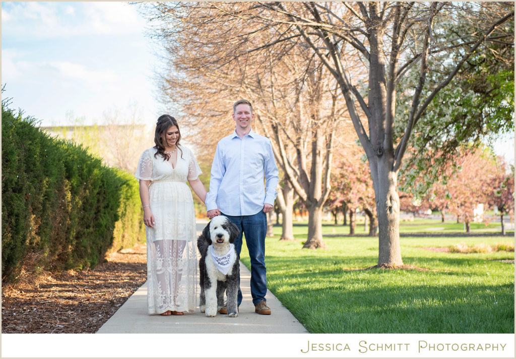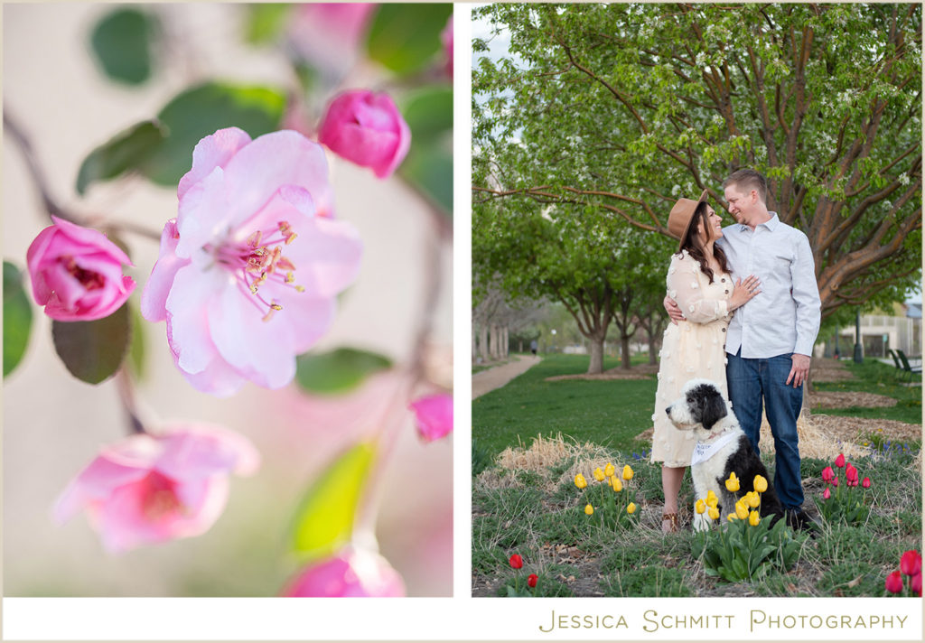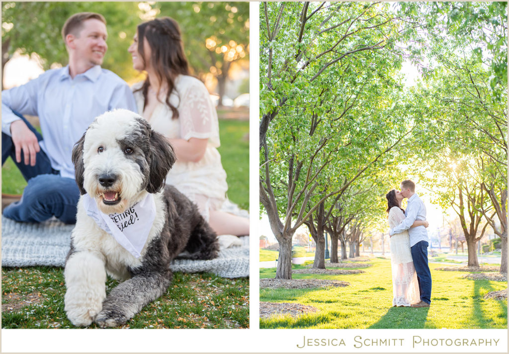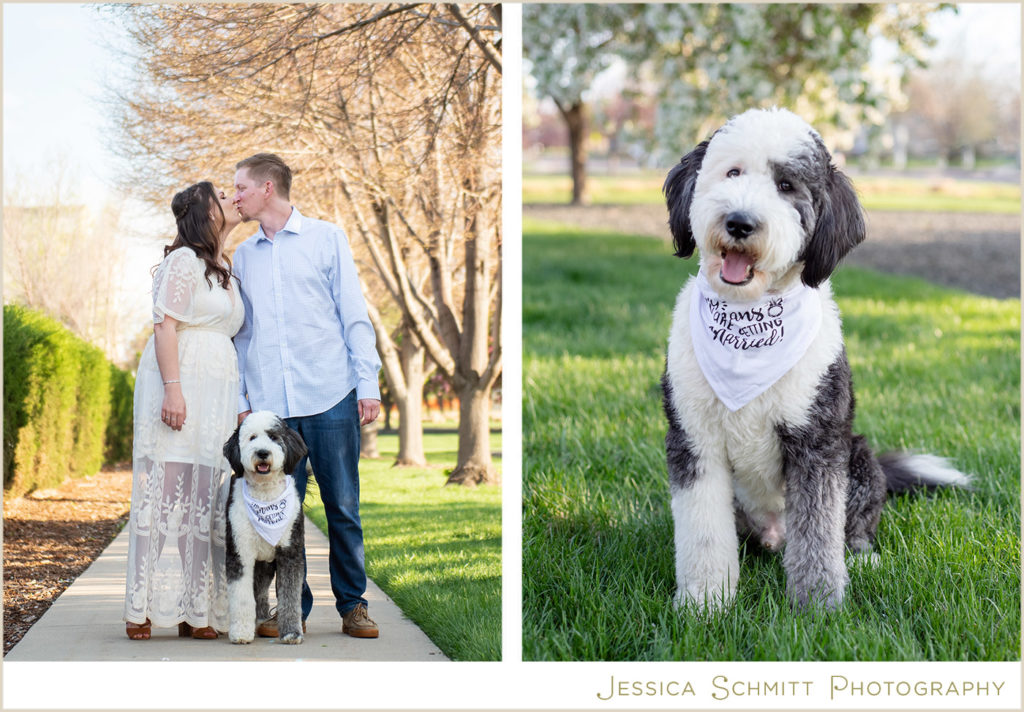 We went to Telluride for our seventh anniversary and he proposed in the morning with our dog Pretzel. The seven year anniversary gift is copper and around pretzels neck he was wearing a copper dog tag that said “Will you marry my dad?” to which my response was, “This isn’t happening.” and I turn around and James was down on one knee in our beautiful hotel room.”