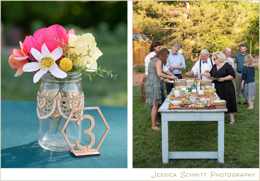 The reception was held outdoors and included many special, personal touches, including these gorgeous handmade paper flowers.