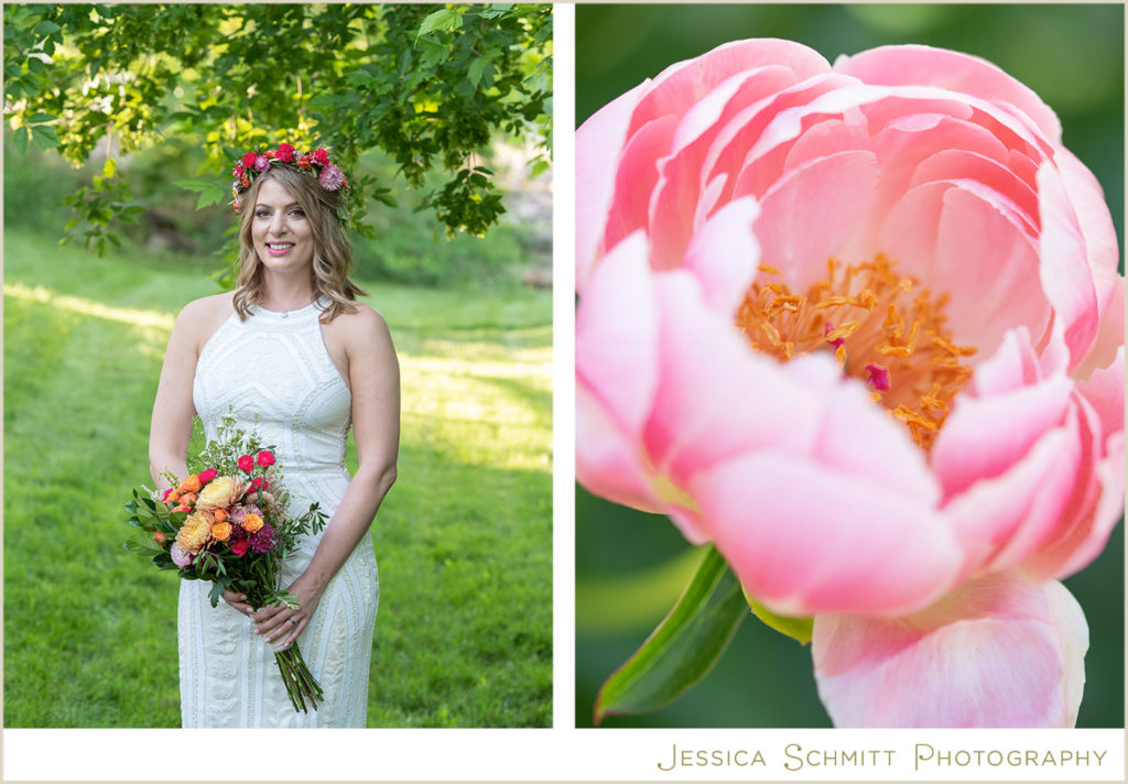 Bouquet: DIY using loose flowers from Boulder Blooms and a scrap of my mom’s old wedding dress to tie it
