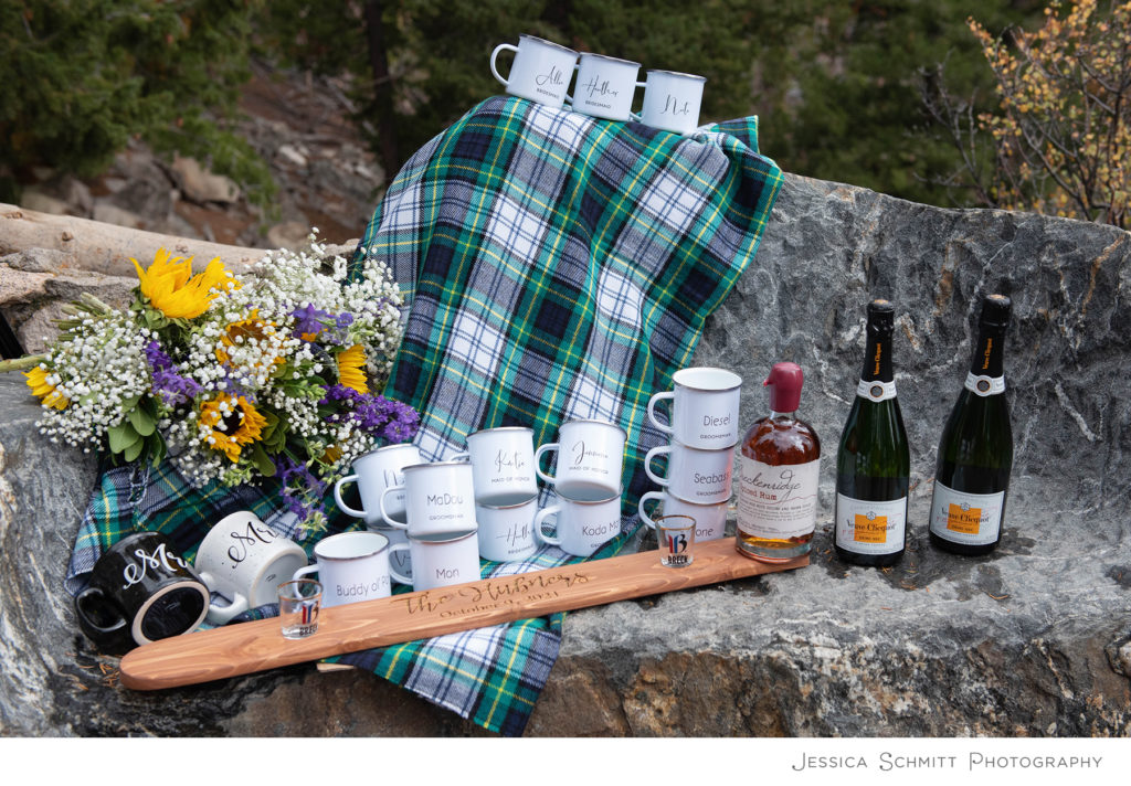 Fast forward to wedding planning and having to make the difficult choice to forgo the big wedding due to all of the Covid issues we saw our friends having. We decided it was fate to elope at Sapphire Point and we wanted to bring along those closest to us – our immediate families and our bridal party. Our vision for the weekend was an intimate, personalized ceremony followed by a house party, totally our style. We love music, dancing, and sharing good food and drinks with our loved ones and we did exactly that. We wanted the location to be the highlight and we selected the villa based on its Tuscan look and awesome bar and patio areas. The menu was a joint collaboration influenced by Steve’s brother, Brian Hubner, and his friend, RJ Harvey, who are phenomenal private chefs in Denver. We wanted it to be an experience and have things on the menu that were a little different from typical wedding menus, almost like elevated BBQ.