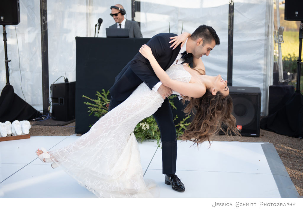 Beyond the ceremony, my favorite parts were being able to surprise Cyrus all night long with meaningful parts of our relationship woven into our wedding. We both always wanted a very classic timeless wedding, but I made sure to add in some subtle touches that are really us – our signature drink names, his Toro nigiri sushi groom’s cake, and “bottle service” from the night we met complete with champagne and pancakes. Even our string quartet played a Drake song when he came down the aisle. It was so much fun seeing Cyrus’s face light up through the night at so many of our inside jokes being represented subtly on our wedding day.”