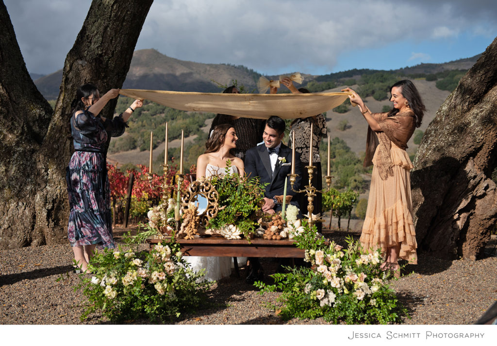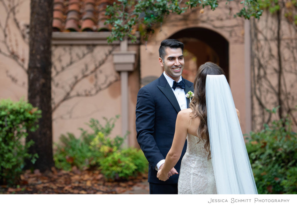 The wedding day began with preparations at the Fairmont Sonoma Mission Inn.