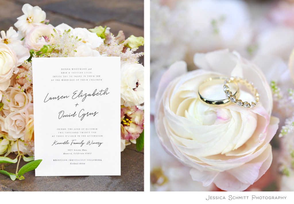 Lauren shares, “Cyrus really only had one request of our whole wedding, that it was to take place in Northern California. Cyrus went to school at Santa Clara University and he really fell in love with the area- I can’t say I could really complain, it is gorgeous there. When we went through the process of selecting a venue, we went to a few places but there was only one where I felt that we were really in wine country. Kunde’s rolling hills with vines sold it to me. I told Cyrus, “You wanted Northern California, this is it plus some!”