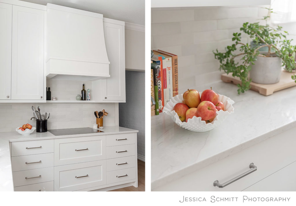 So much time and consideration went into all of the details. I was very specific about wanting a matte white tile for our backsplash. We decided on the Bedrosians Makoto 2.5″ x 10″ Matte Ceramic Wall Tile in Shoji White. We were really excited to find a white oven and speed oven by Miele. We must have looked at thousands of countertops all over Colorado before we decided on Volakano quartz from Colorado Surfaces.