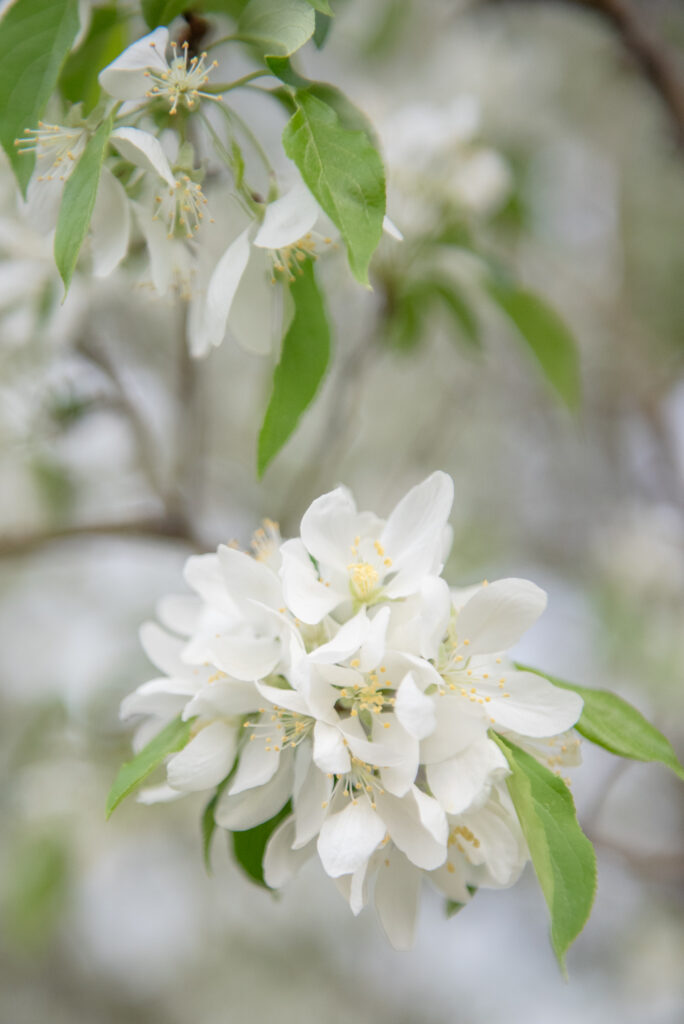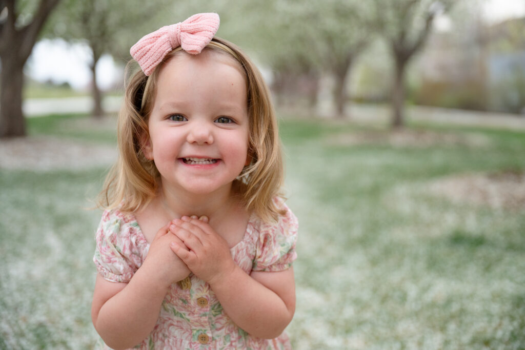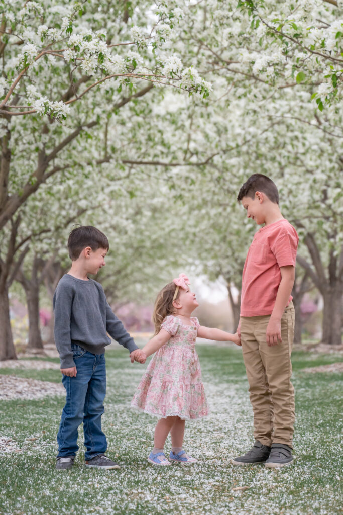 The crabapple trees in our neighborhood began to bloom and I was able to get the kids to smile for me with the promise of a special dinner picnic in the park …with cookies!