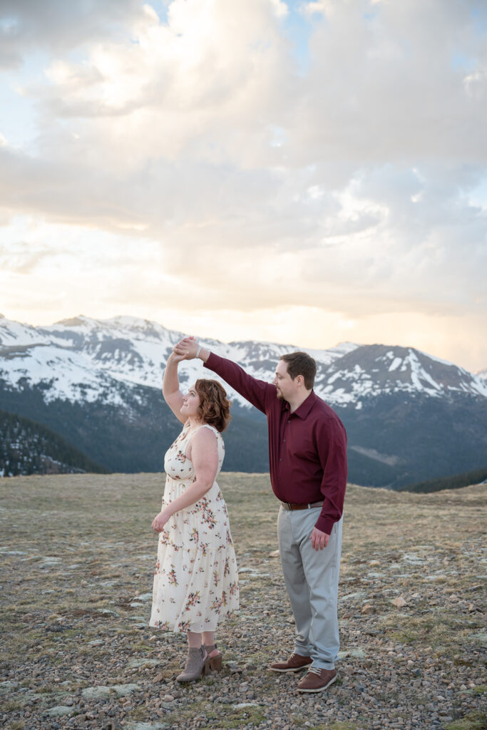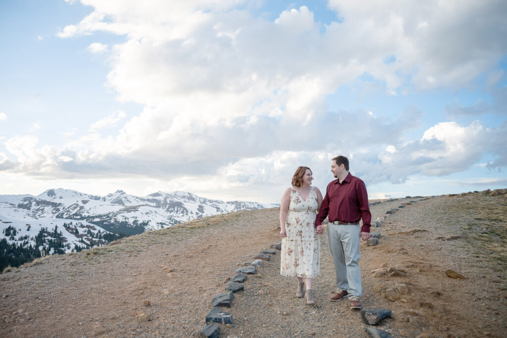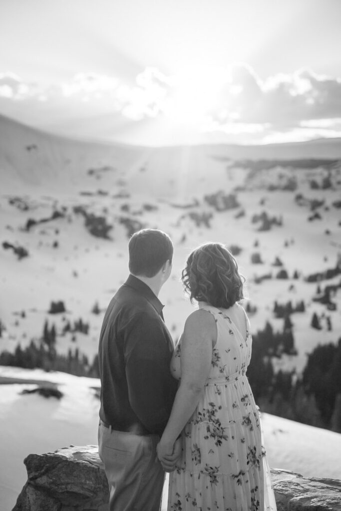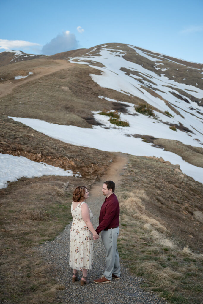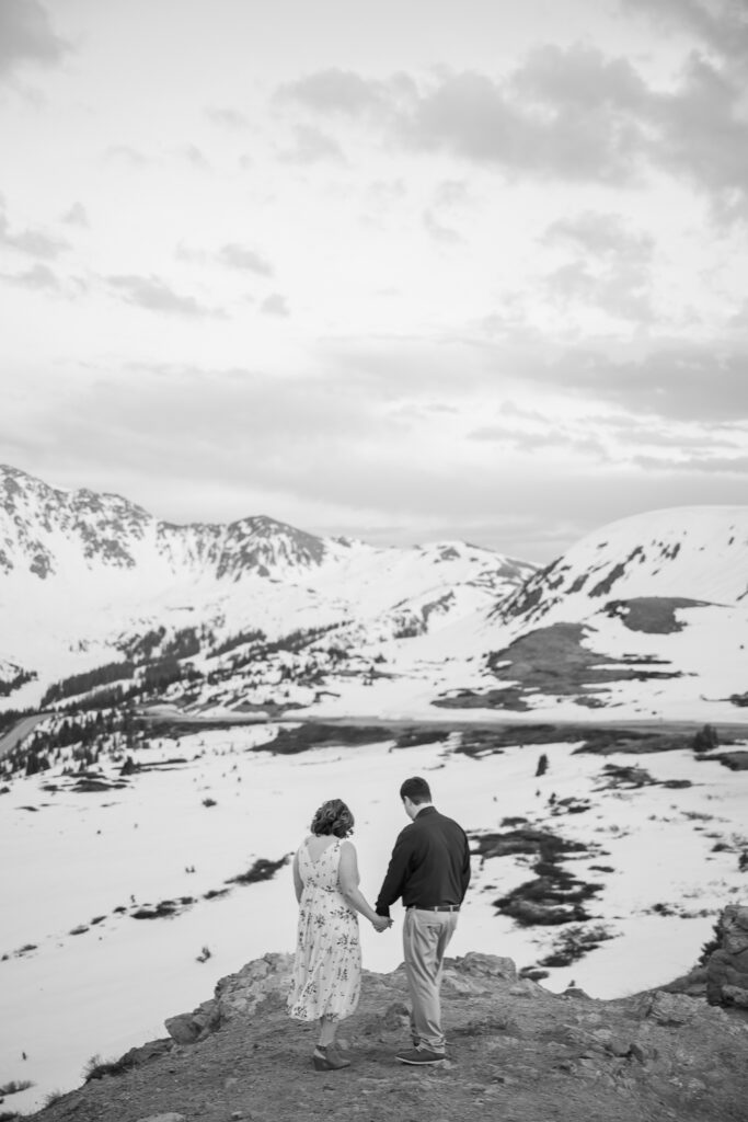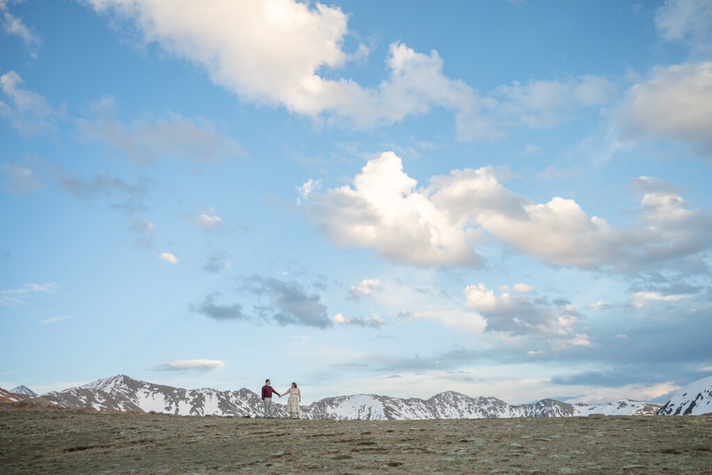 Choosing a location for their engagement photos was important. Talia shares, “We are both Colorado natives and it is something unique and something we’re proud of. We wanted to make sure to go somewhere quintessential Colorado. The top of the Continental Divide with snow-capped peaks could not have been a more perfect place.”