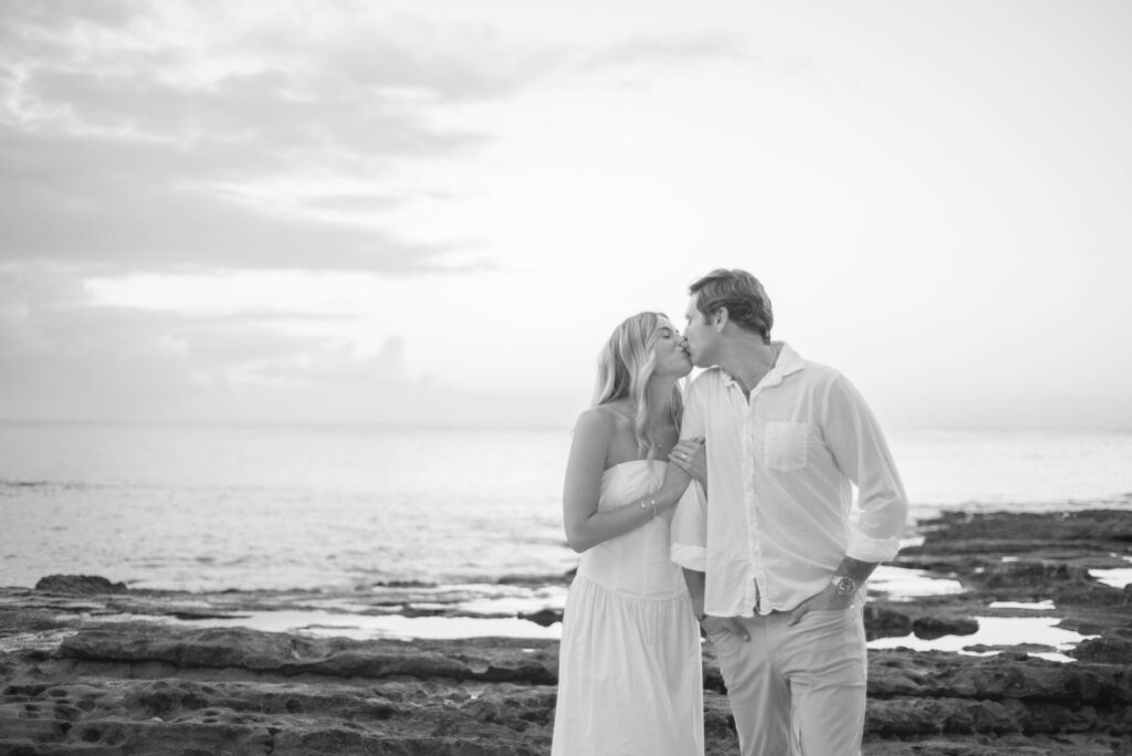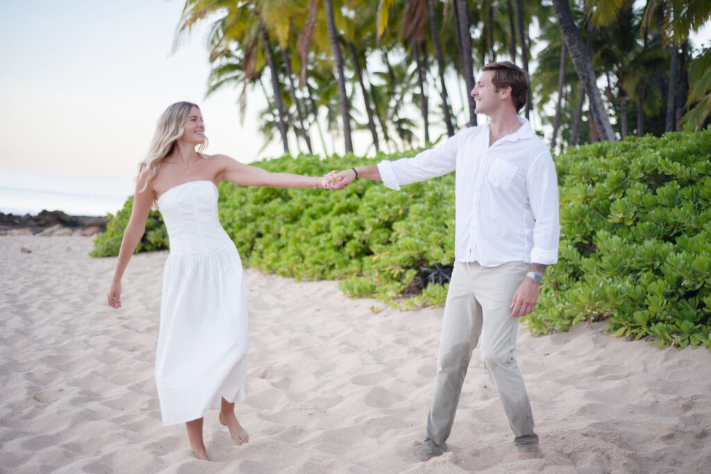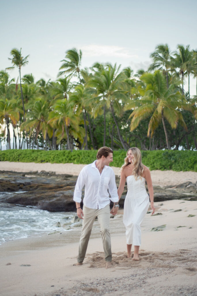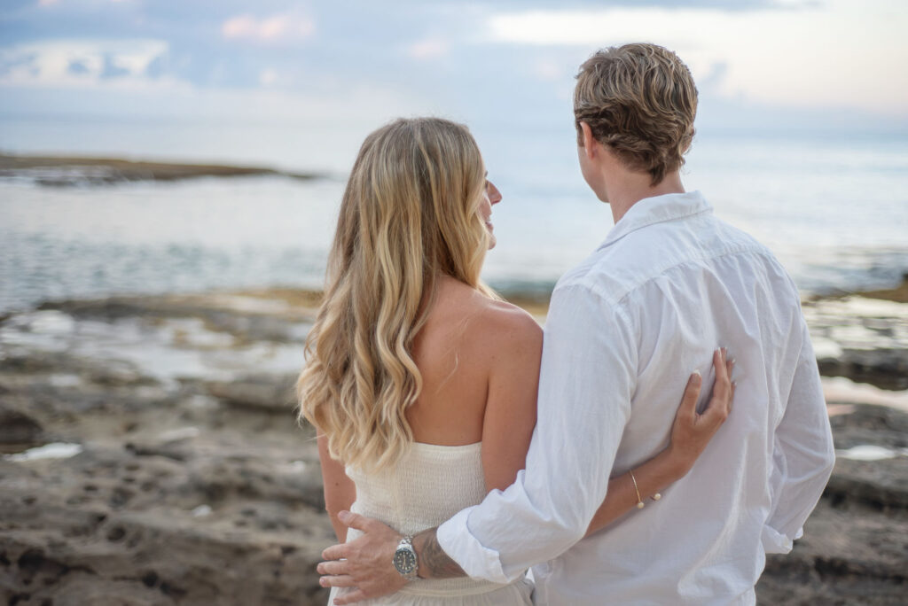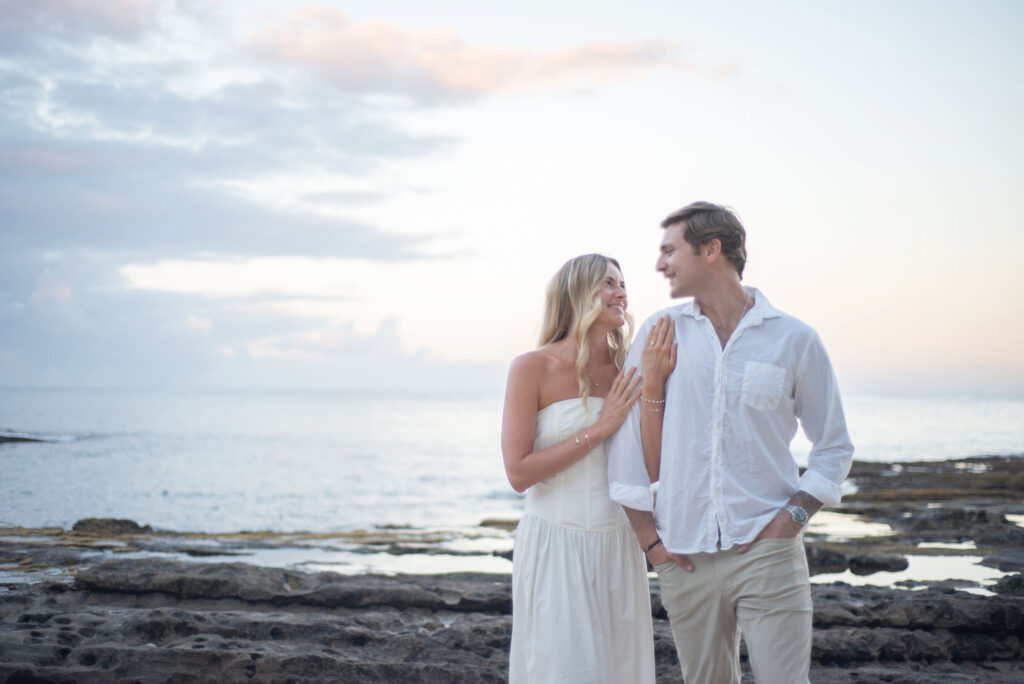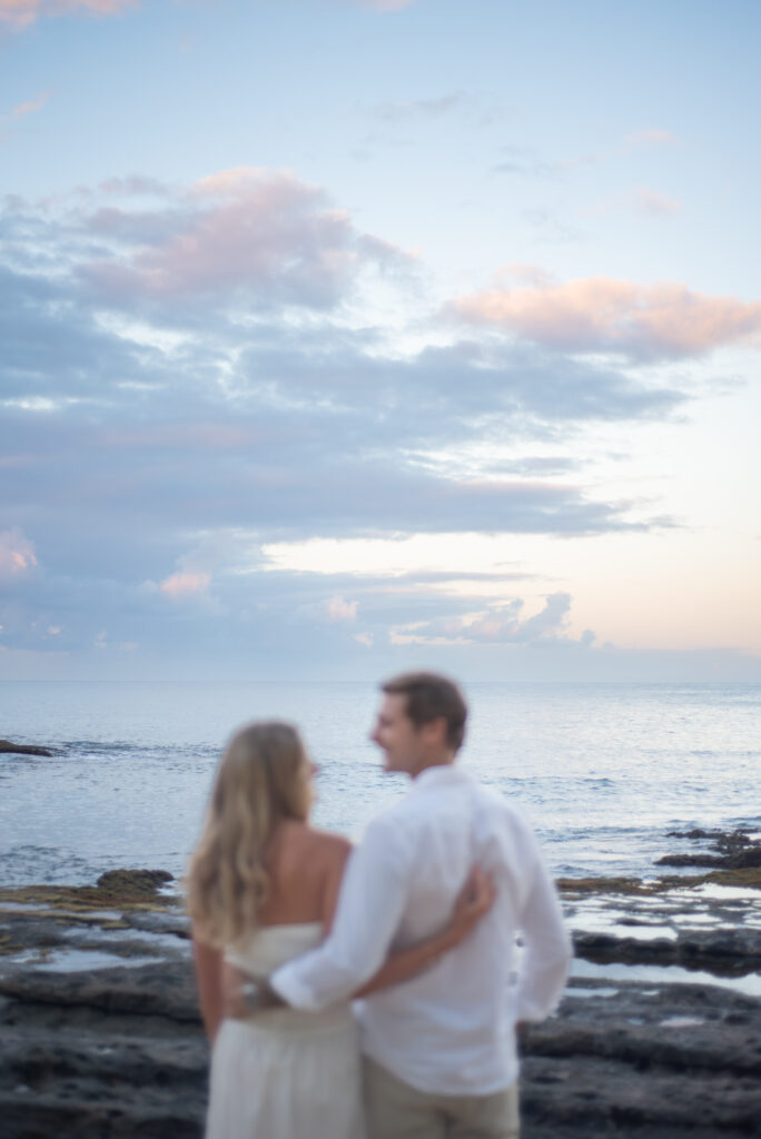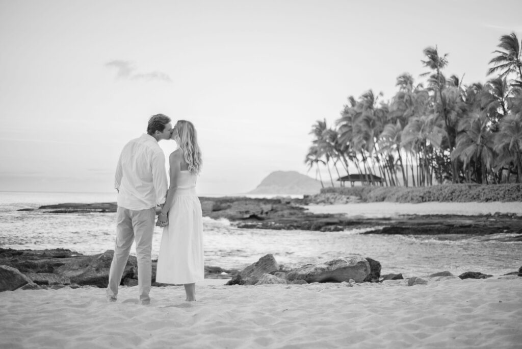 I met Kara and John in Ko Olina in Oahu to celebrate their engagement. We had a beautiful sunrise session on the beach with gentle waves crashing and palm trees blowing in the breeze.