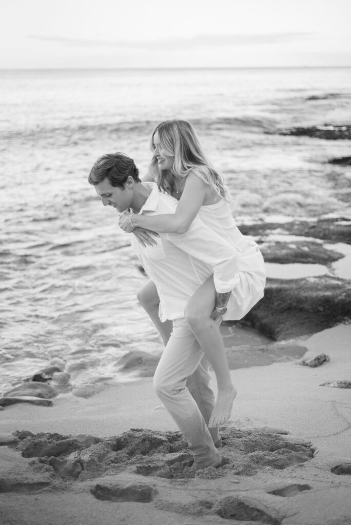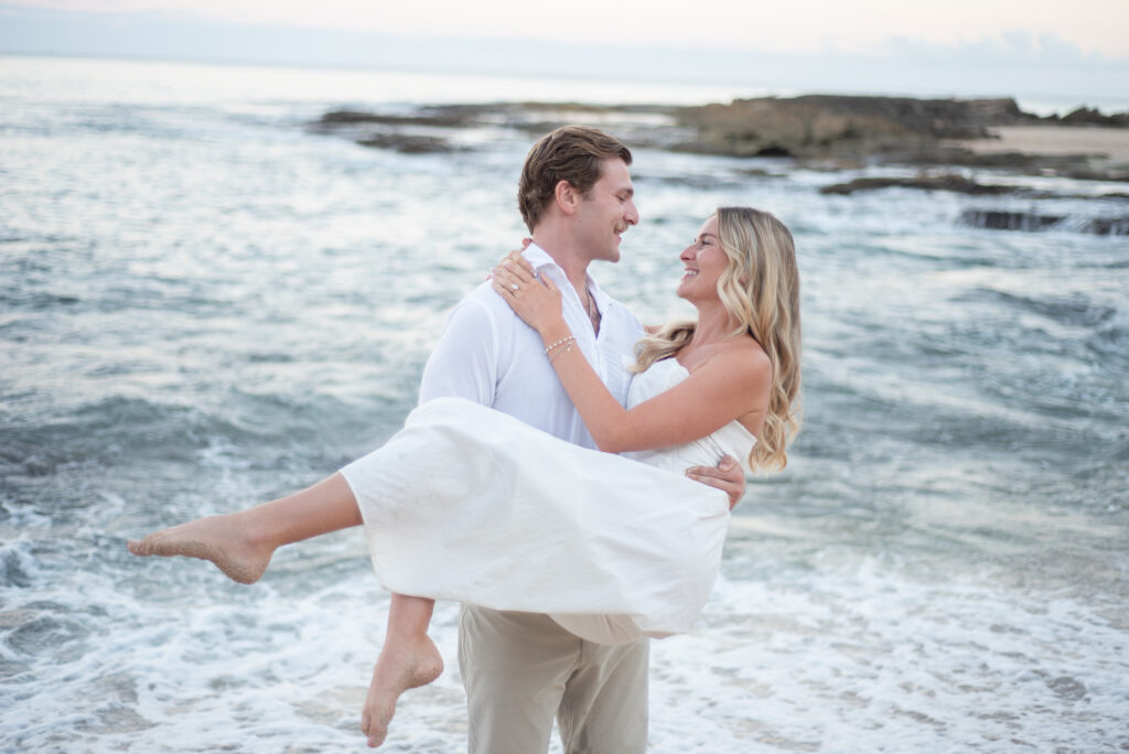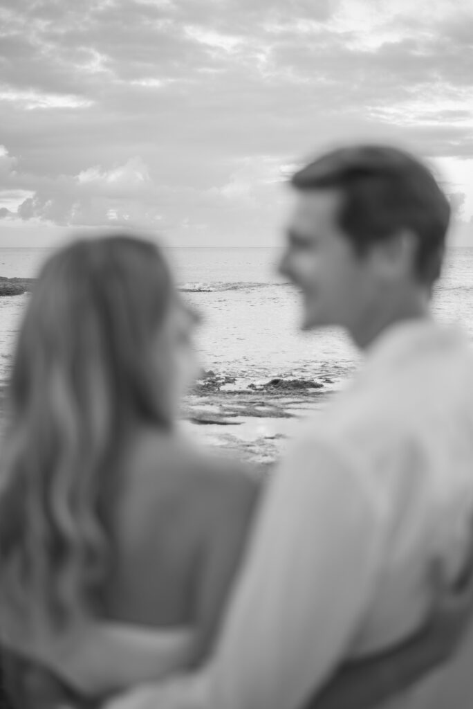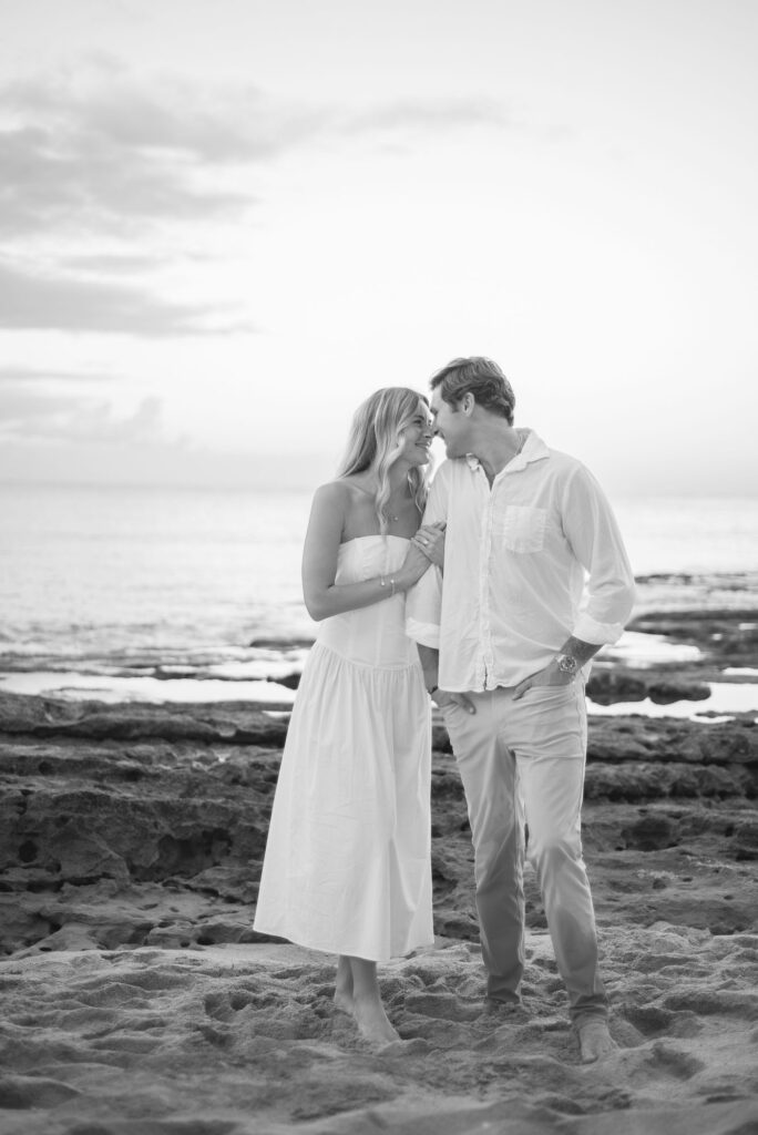 We had a great time at Tommy Bahamas, probably drinking a little too much, and then headed to watch the sunset. As we pulled up to the same beach we had accidentally walked that morning, I hopped out of the car to run to the bathroom, luckily giving John enough time to call the secret photographer he had booked telling her we arrived. She had set up a little ways down the beach so I wouldn’t spot her immediately. As we strolled down the beach, we passed a guy sitting with his friends who called out to us, “Were you guys just at Tommy Bahama? I was serving the table next to you.” I was tipsy and cracking up while John was pulling me down the beach with my head down, looking at the sand, being oblivious just like my dad.