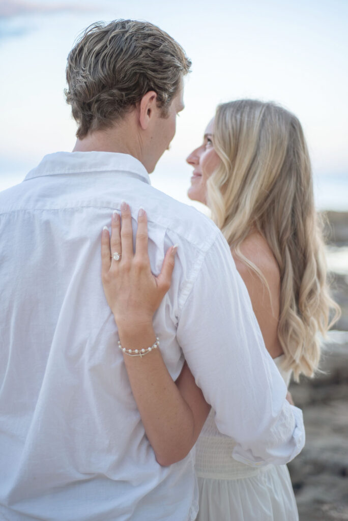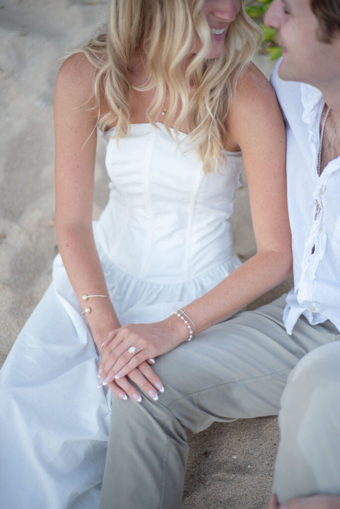 We had flown out to Maui for Valentine’s weekend, our first island hop since living on Oahu. I had asked him a million questions on what I should wear, getting my hair and nails done. He handled my curiosity annoyingly perfectly. I was suspicious but also did not want to be let down. The day after Valentine’s Day, we went for a walk on the beach, not knowing that was the beach we were going to later that night. We had a chill day at the pool of our Airbnb and played card games all afternoon. John was so relaxed I didn’t think anything was happening. He had told me he found a steakhouse he wanted to try that night, not out of the ordinary for a guy from Texas, and that we would go watch the sunset before because our reservation was so late.