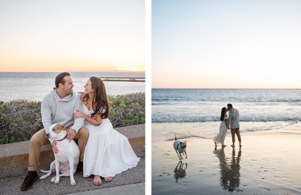 One of my most important tips for including a dog in your engagement photos is to have a person designated to be your dog’s “handler” or “buddy.” This could be a friend or family member, or someone you hire to come help. They can walk your dog, make sure they have water and treats and are taken care of when they are not participating in photos. This way you don’t have to worry about your pet at all and you can be present and focus on your photography.