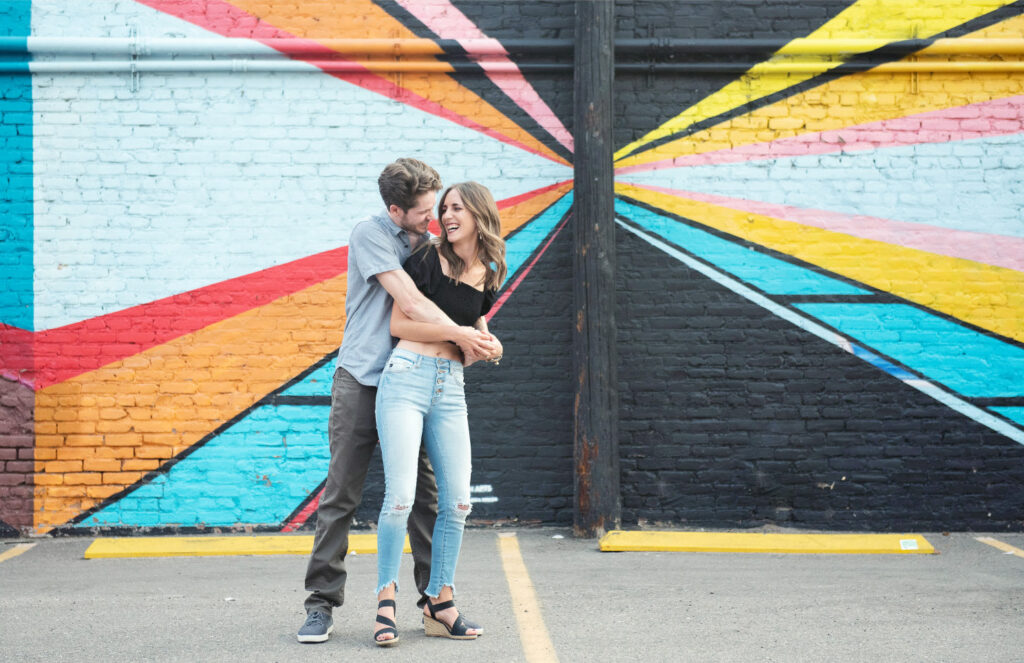 Downtown RiNo, also known as the River North Art District, is the go to spot for couples who love bold colors and creative energy. This neighborhood is filled with vibrant murals, industrial buildings, and trendy urban textures.