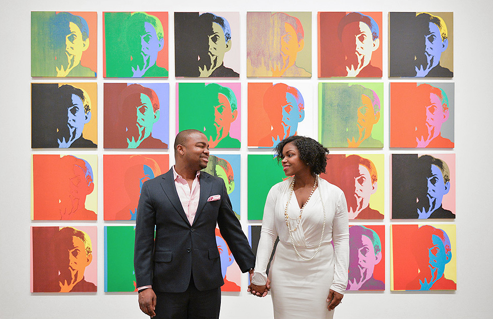 This photograph of the couple in front of the colorful Warhol prints was taken at the Brooklyn Art Museum in New York City, but conveys the style that is available at the Denver Museum.