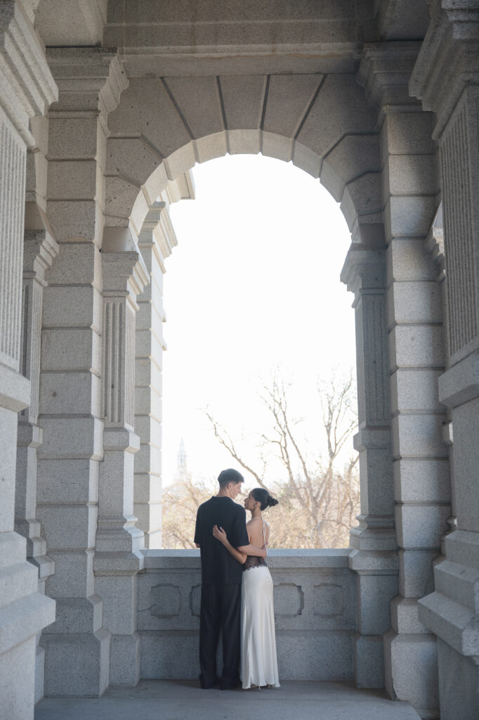 What makes this location particularly special for engagement sessions is its versatility. The grand west steps are perfect for dramatic, statement-making portraits, while the surrounding gardens and tree-lined paths soften the experience, offering moments that feel more relaxed and romantic. Whether you’re envisioning something fashion-forward or quietly intimate, the Capitol adapts beautifully.
