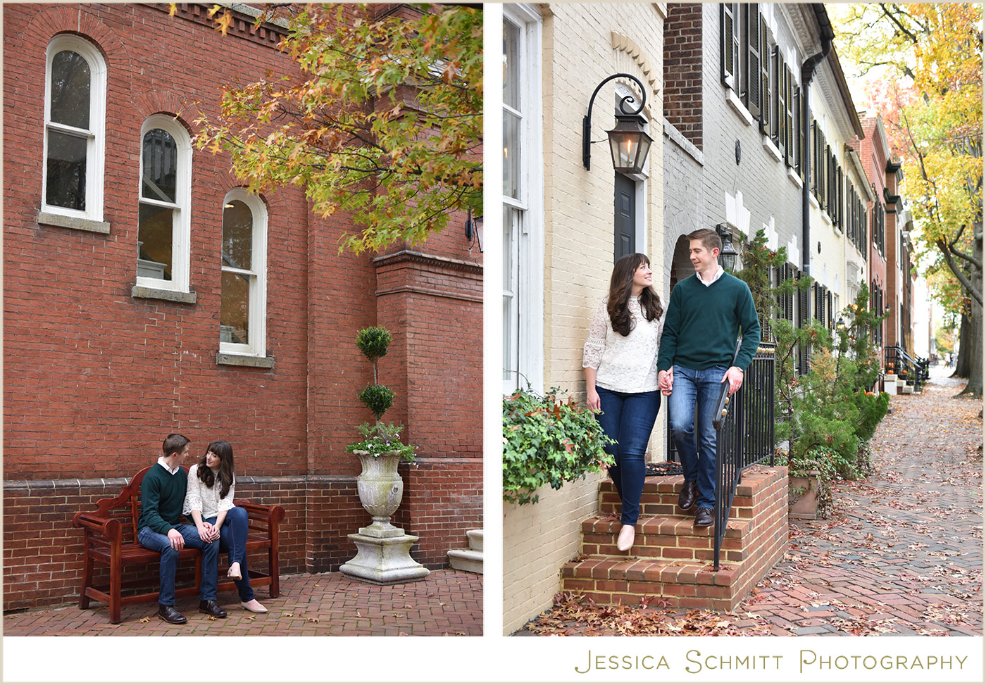 Sarah and Will love Old Town Alexandria. The charming homes, cool doors and beautiful fall colors are so lovely–the city is so picturesque! We were able to get tons of wonderful photos during their two hour engagement session.